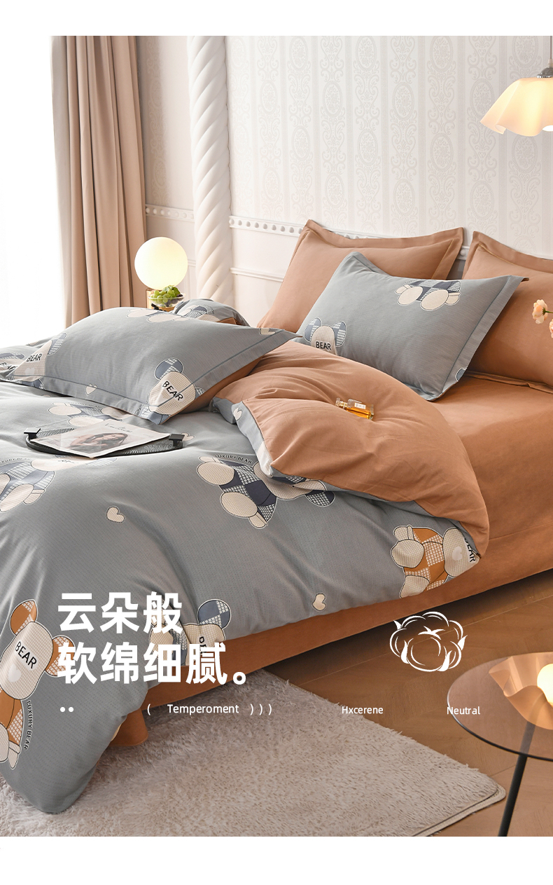 当前位置: 91家纺网 > 商品网购 > 床品套件 > 四件套 > 全棉普通四件套 > 优尚家纺 2025新款全棉磨毛纯棉喷气印花清新轻奢款四件套 轻奢款-星辉熊语