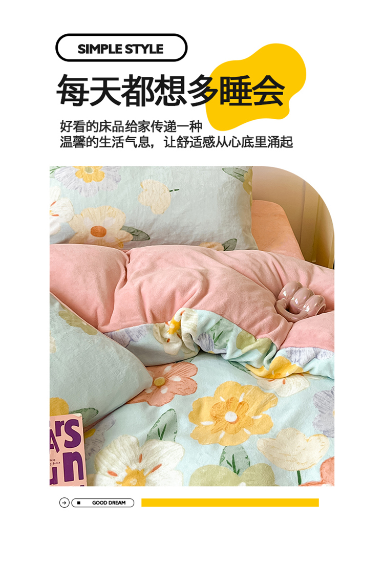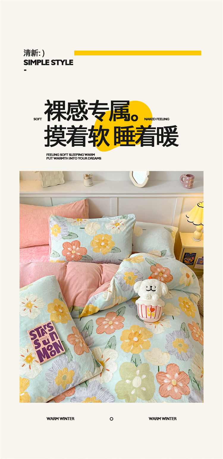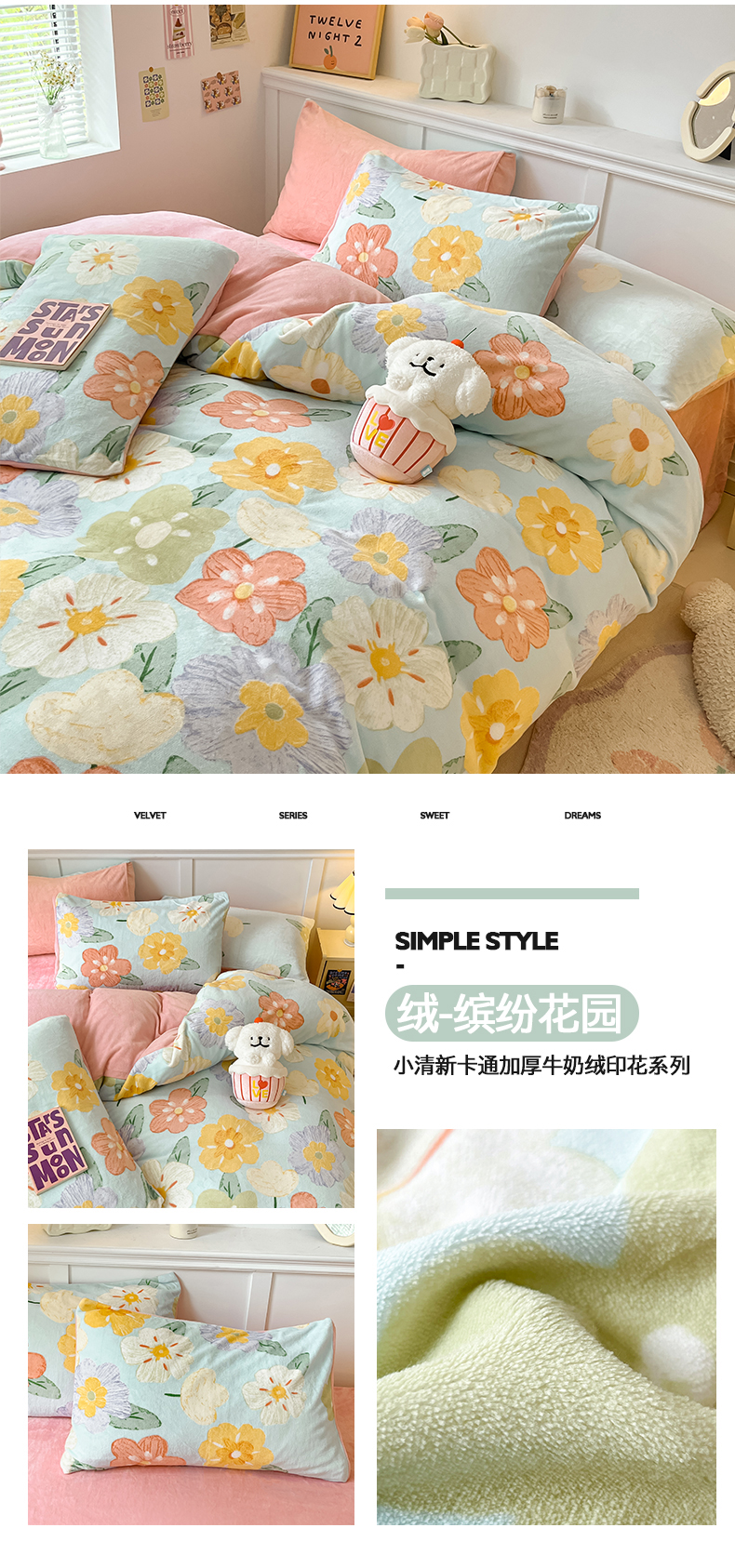 2024新款200g加厚防静电牛奶绒小清新四件套 绒-缤纷花园