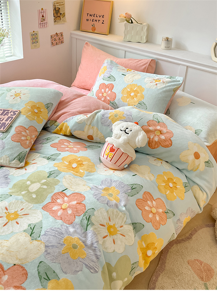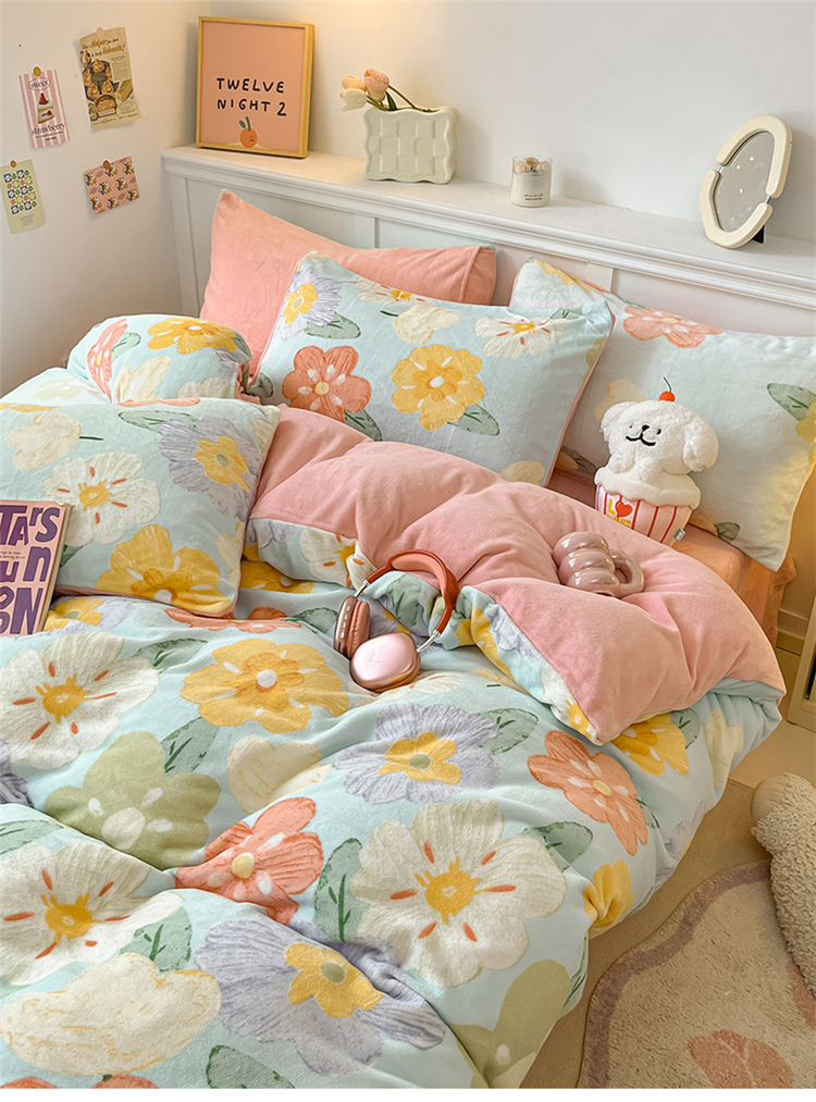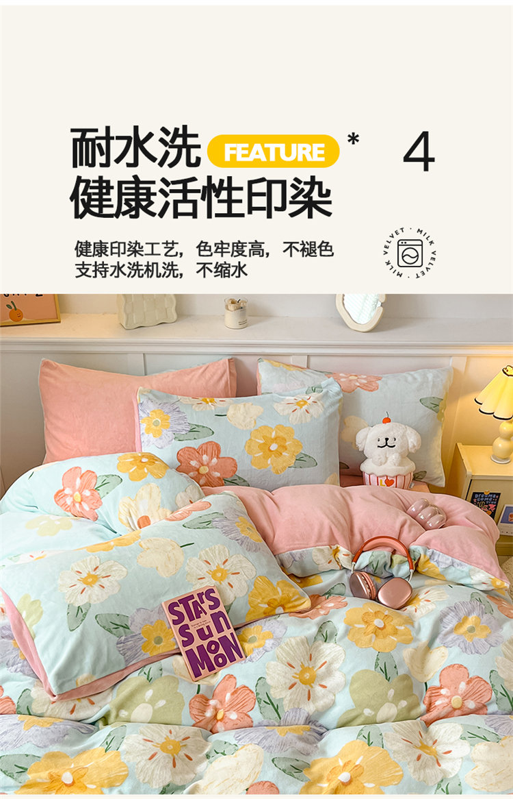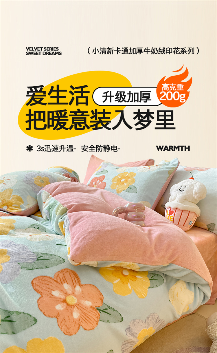2024新款200g加厚防静电牛奶绒小清新四件套 绒-缤纷花园