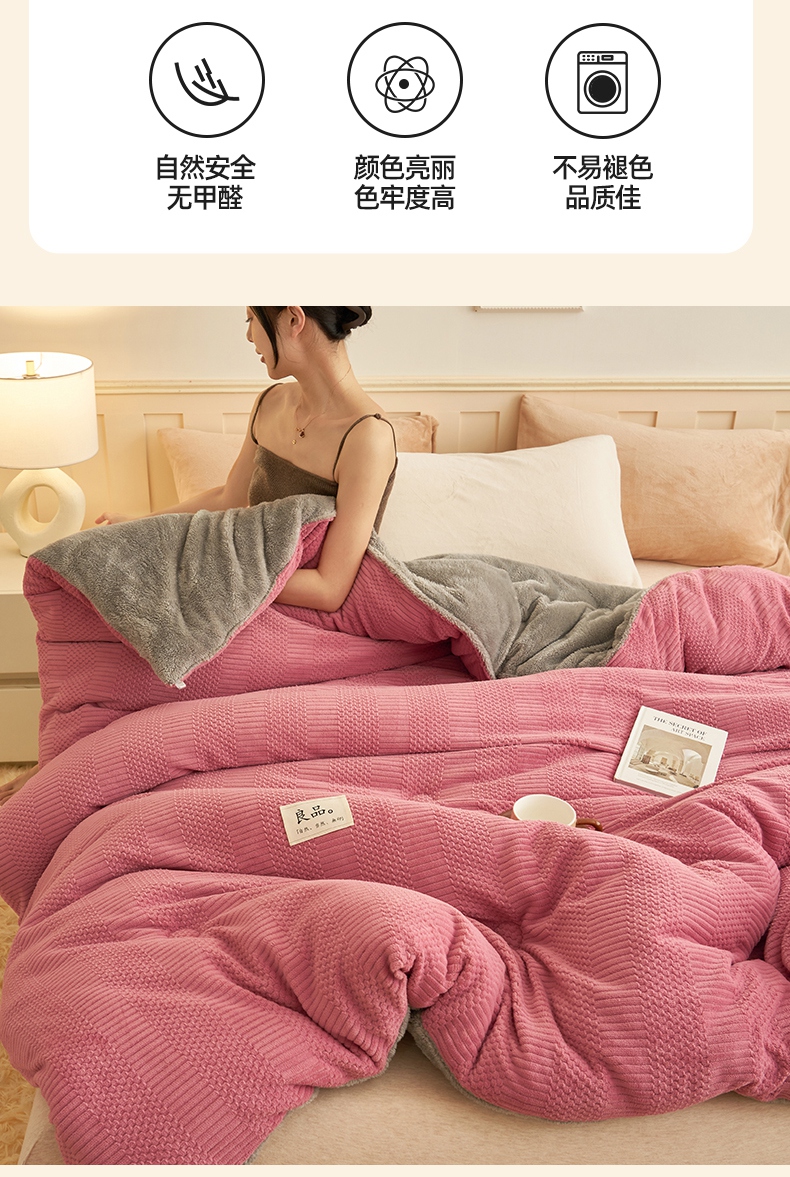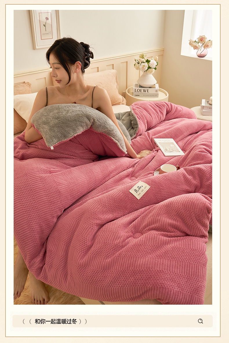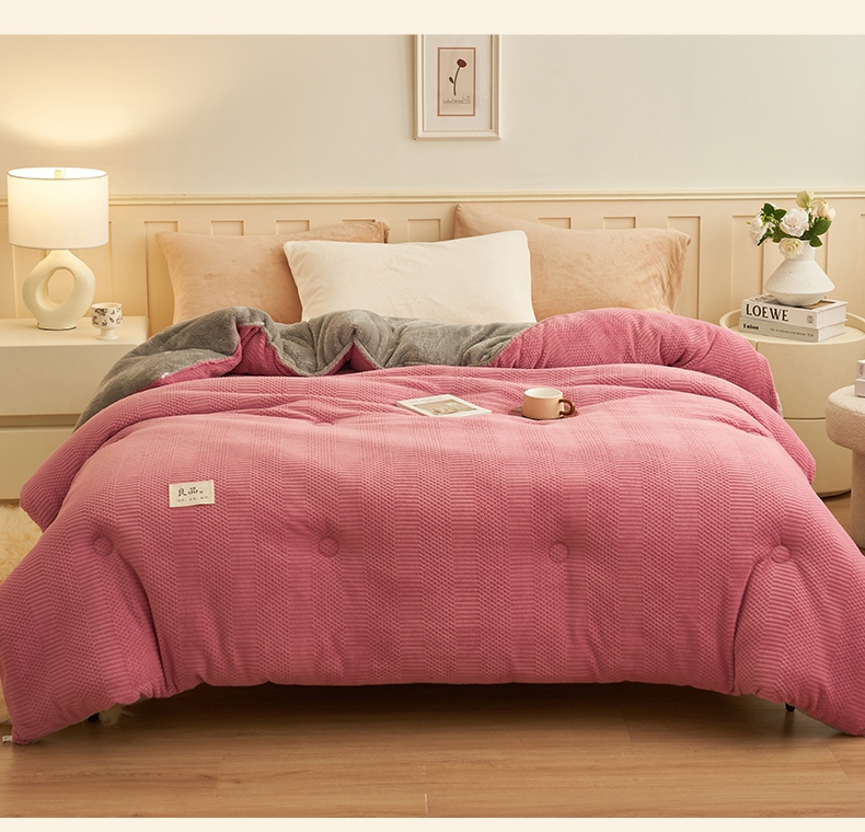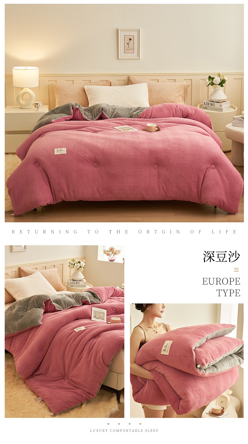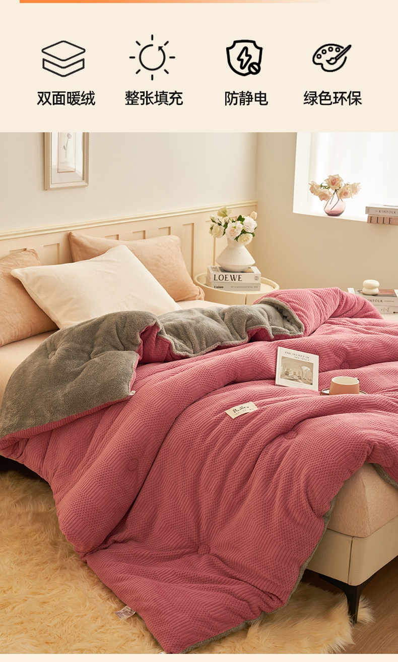 • 91家纺网 家纺一手货源 找家纺 2024新款保暖牛奶绒剪花北极绒冬被子被芯 深豆沙