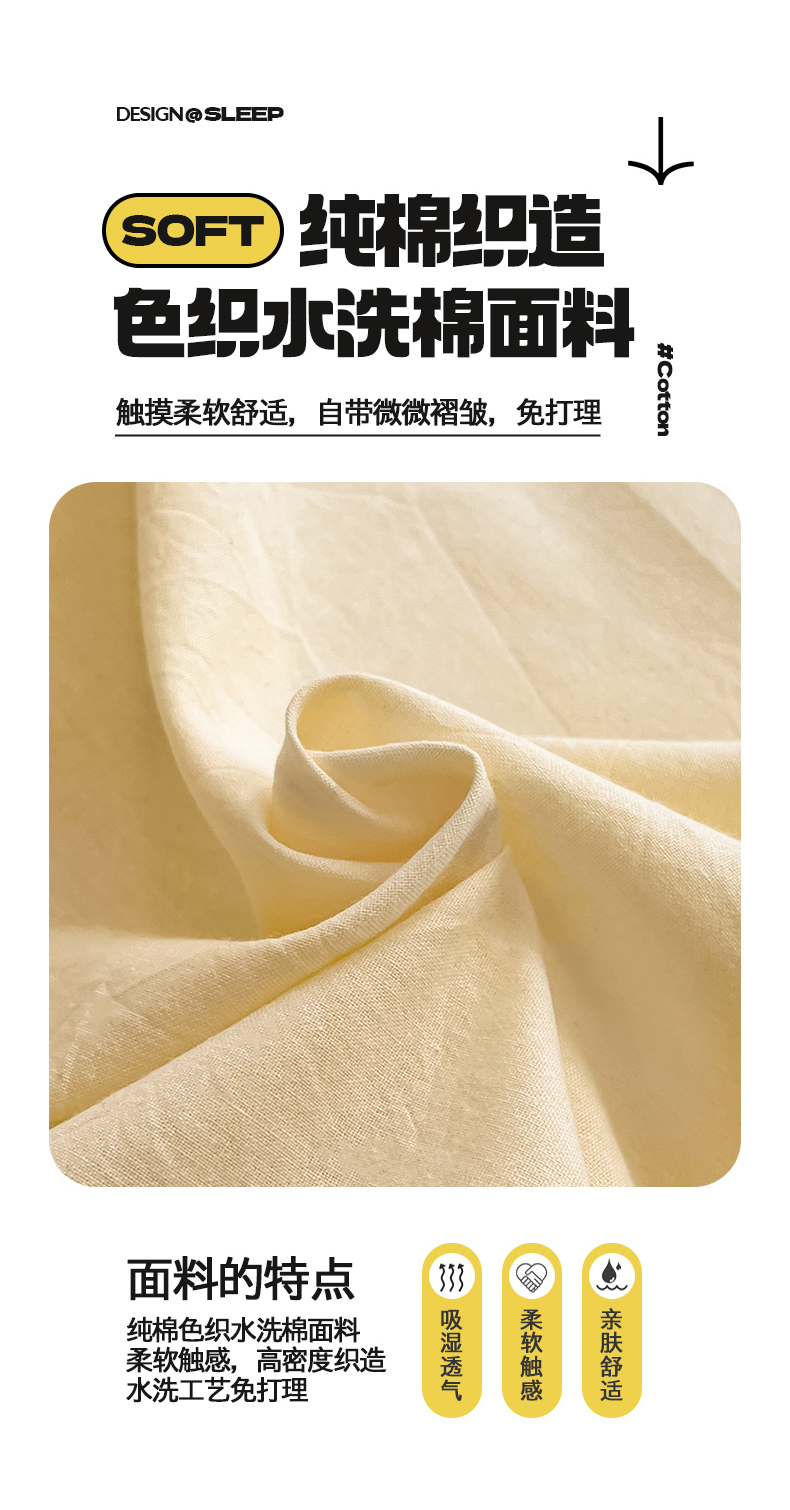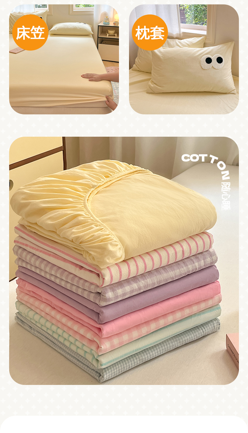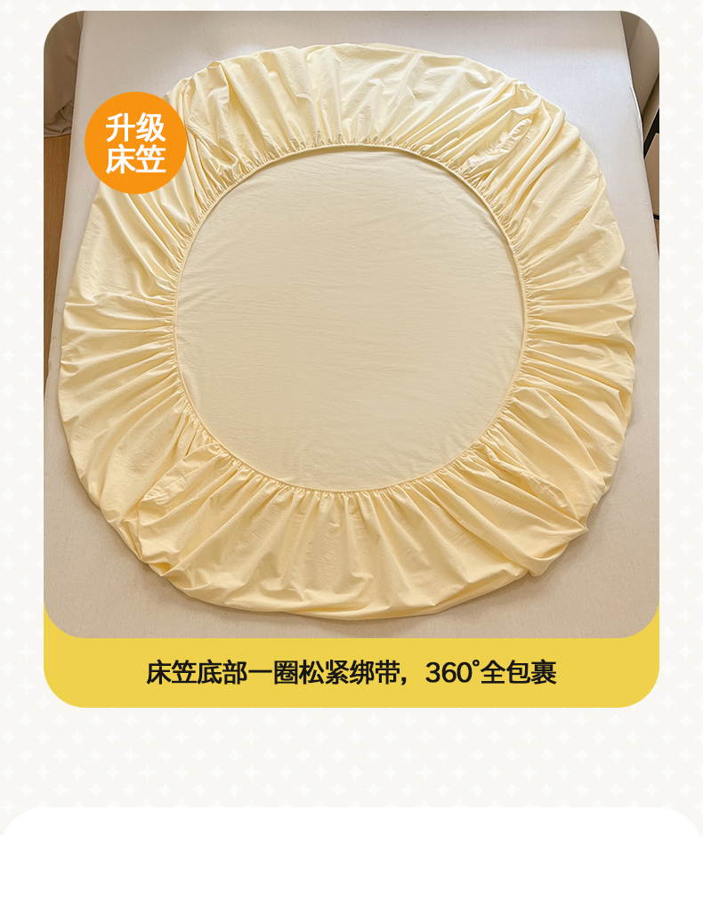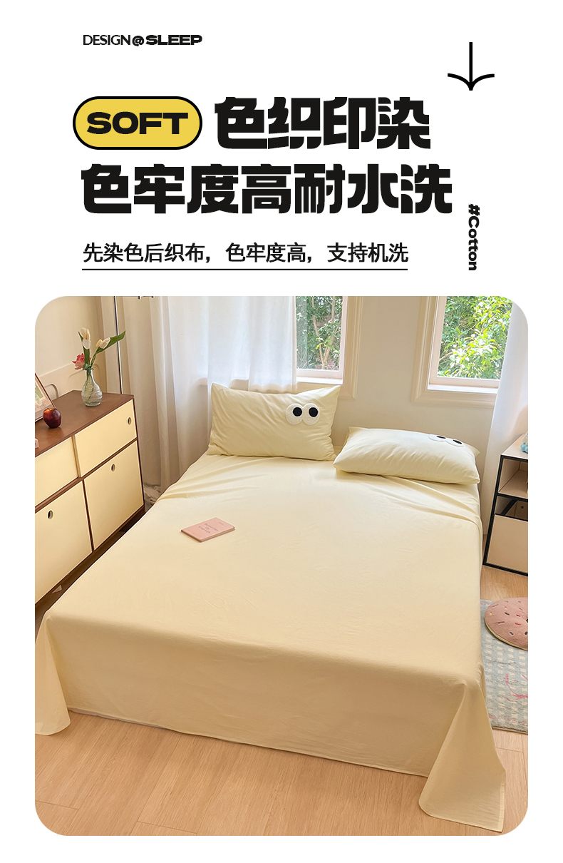 • 91家纺网 家纺一手货源 找家纺 桃子 2024新款ins纯棉色织水洗毛巾绣大眼仔单床笠 色织水洗棉-大眼仔奶黄