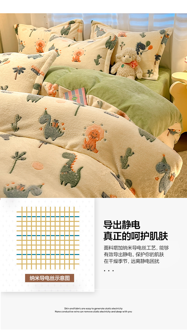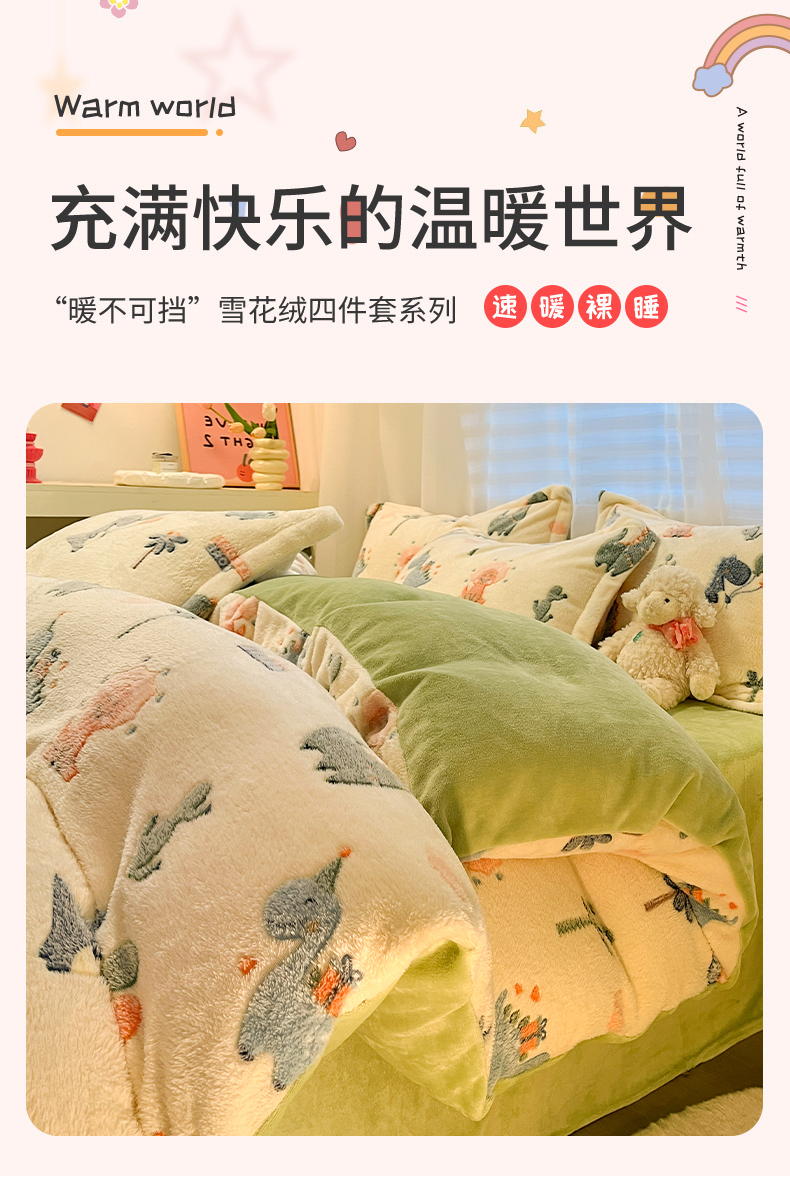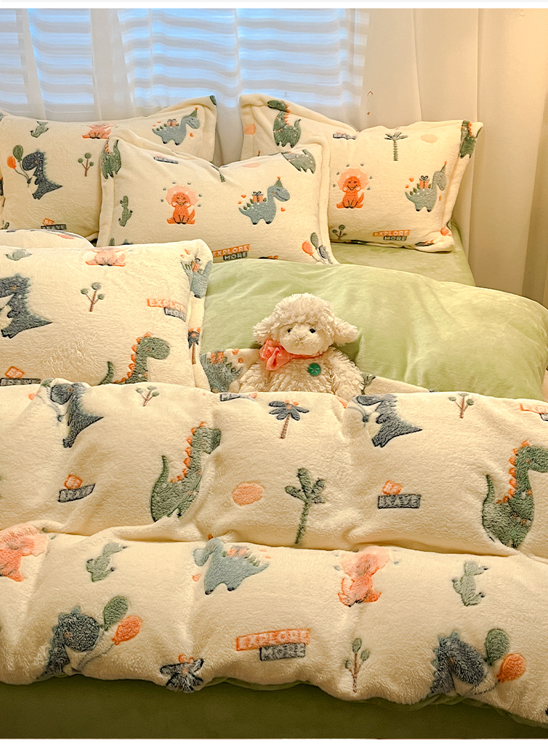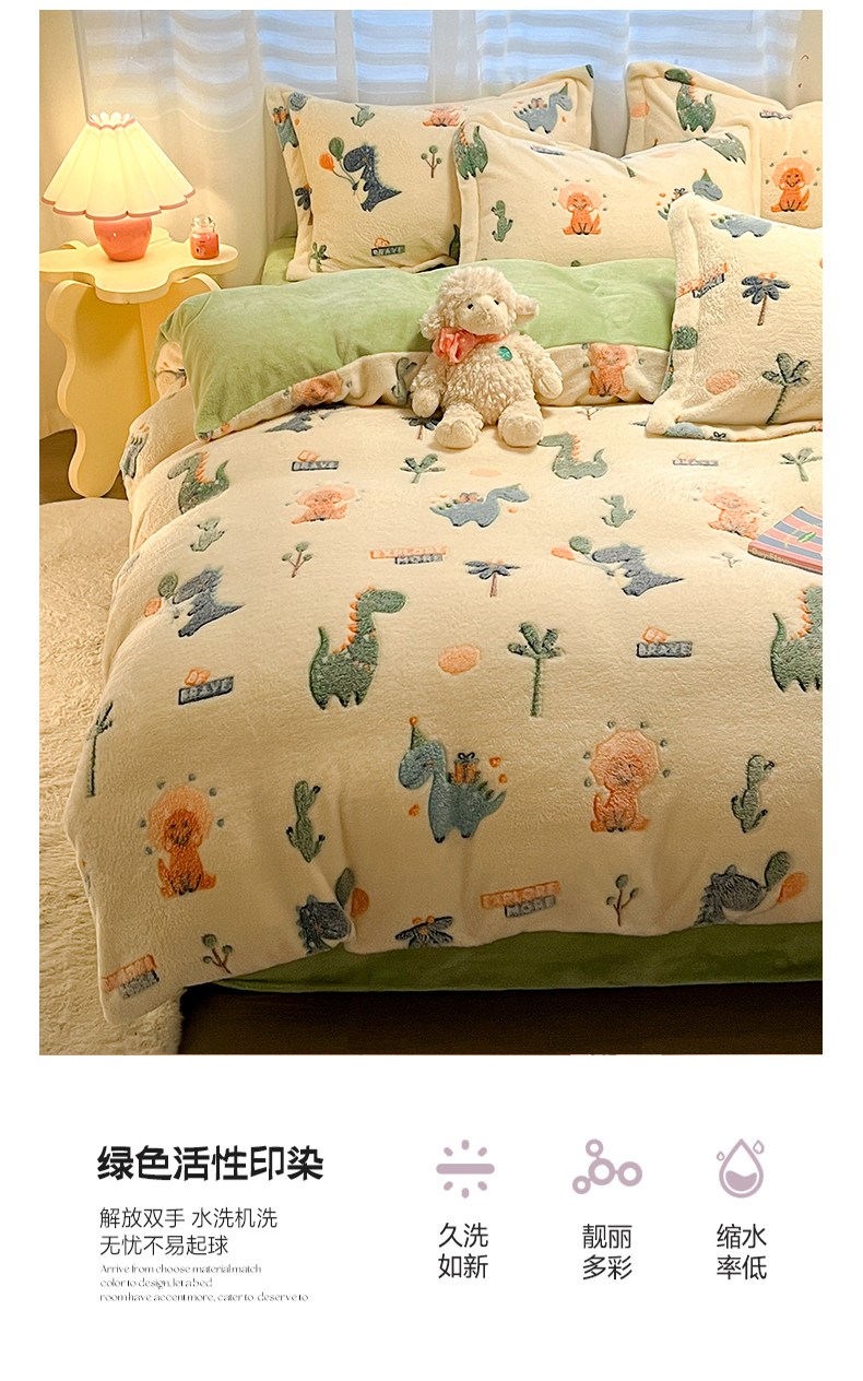 当前位置: 91家纺网 > 商品网购 > 床品套件 > 四件套 > 其它四件套 > 韩巢家纺 2024新款加厚雪花绒印花四件套-风格一(提供卖家秀) 恐龙宝贝(绿)