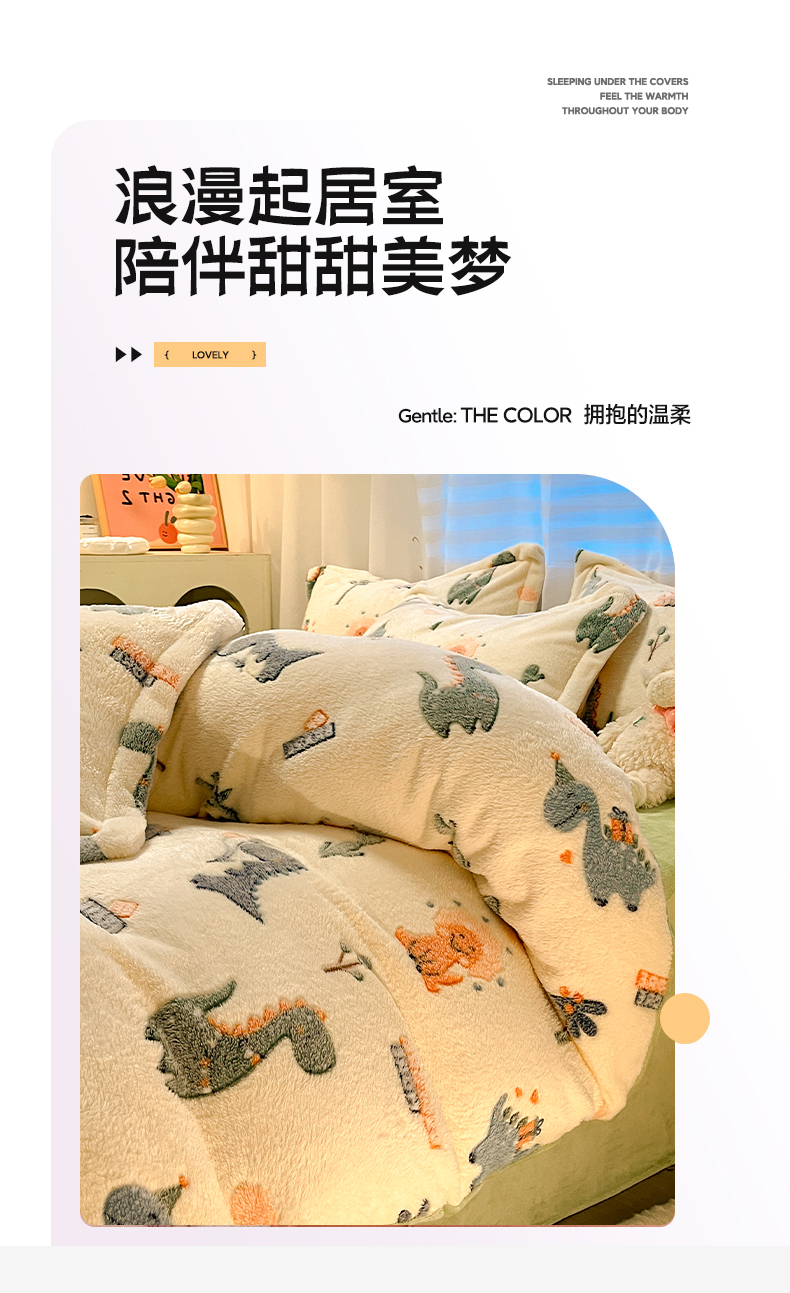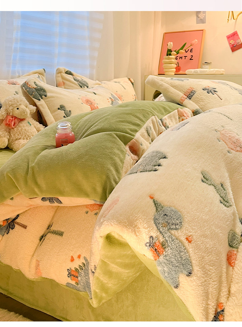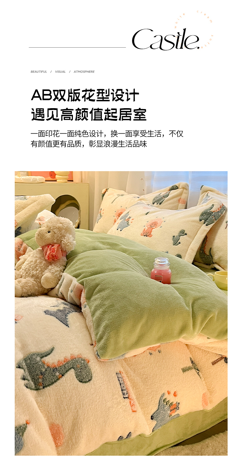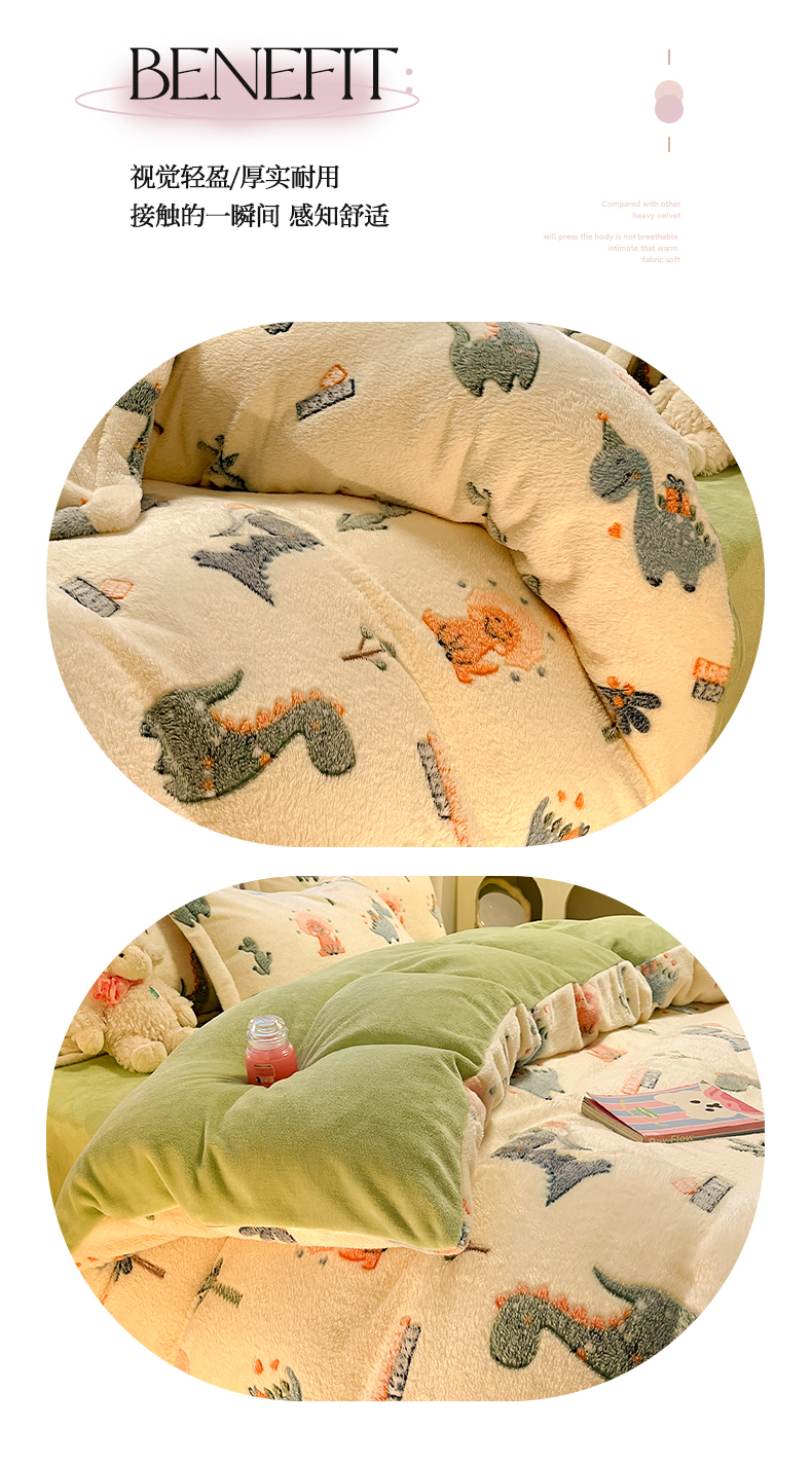 当前位置: 91家纺网 > 商品网购 > 床品套件 > 四件套 > 其它四件套 > 韩巢家纺 2024新款加厚雪花绒印花四件套-风格一(提供卖家秀) 恐龙宝贝(绿)
