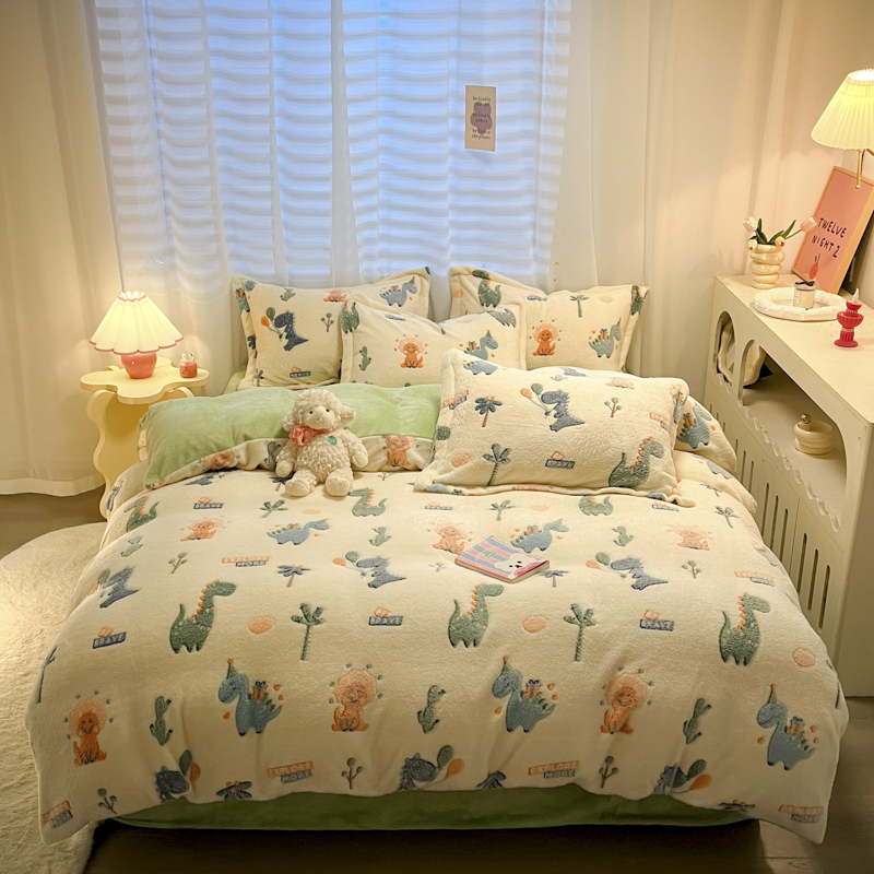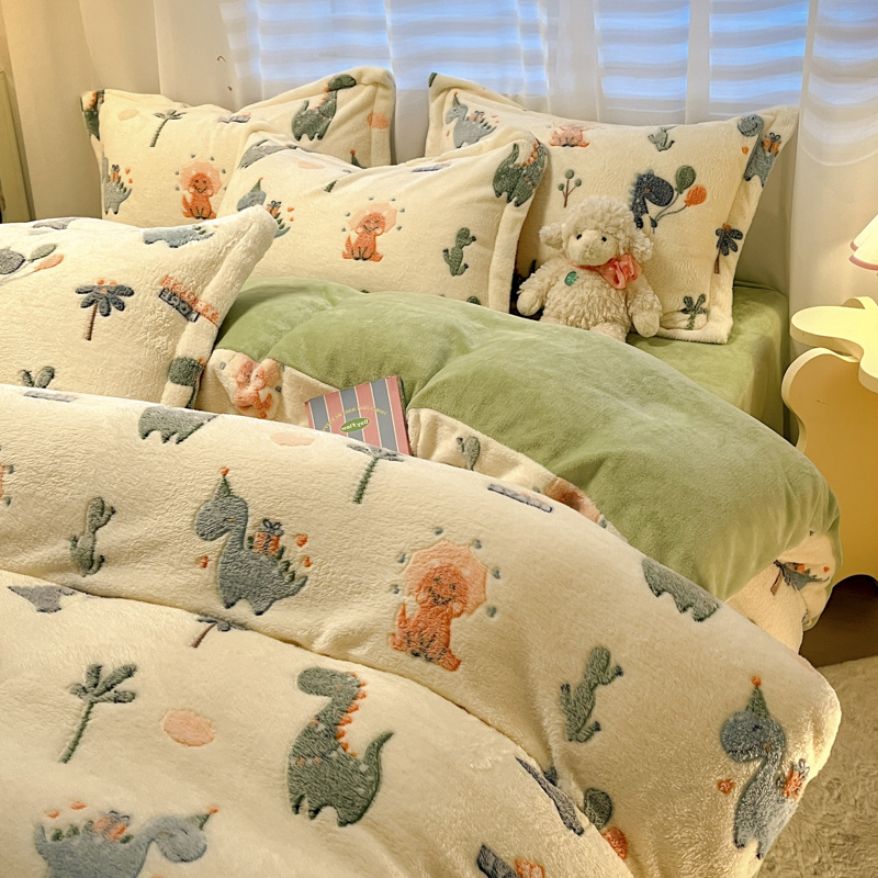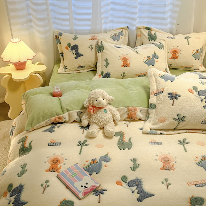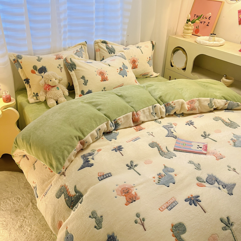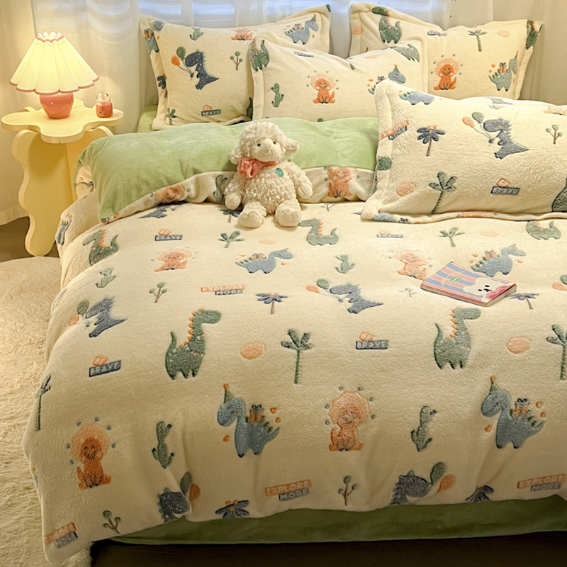 韩巢家纺 2024新款加厚雪花绒印花单件被套-风格一(提供卖家秀 ) 恐龙宝贝(绿)
