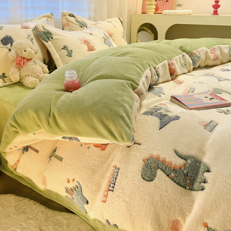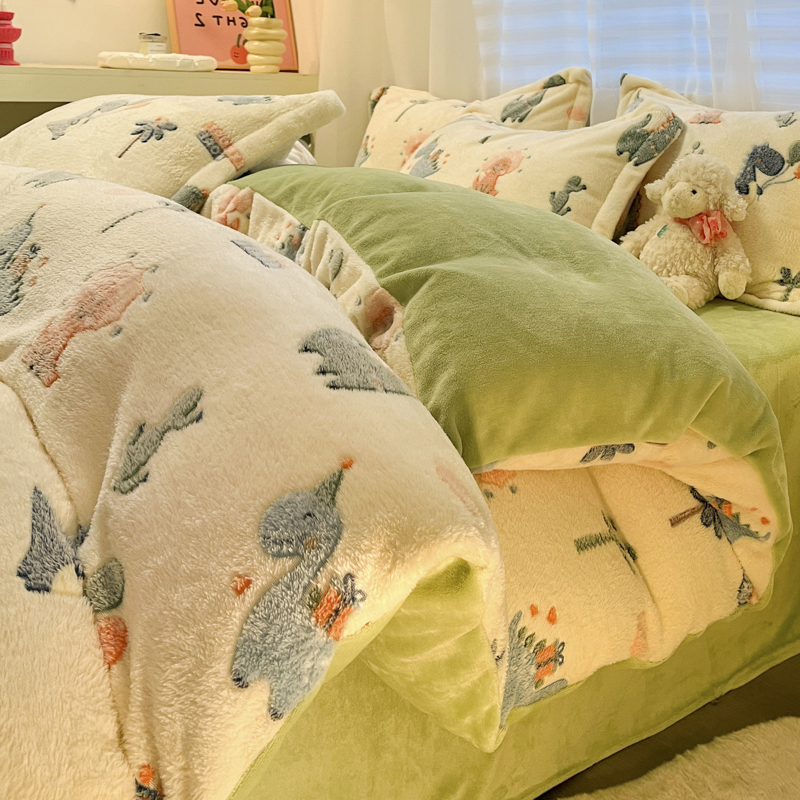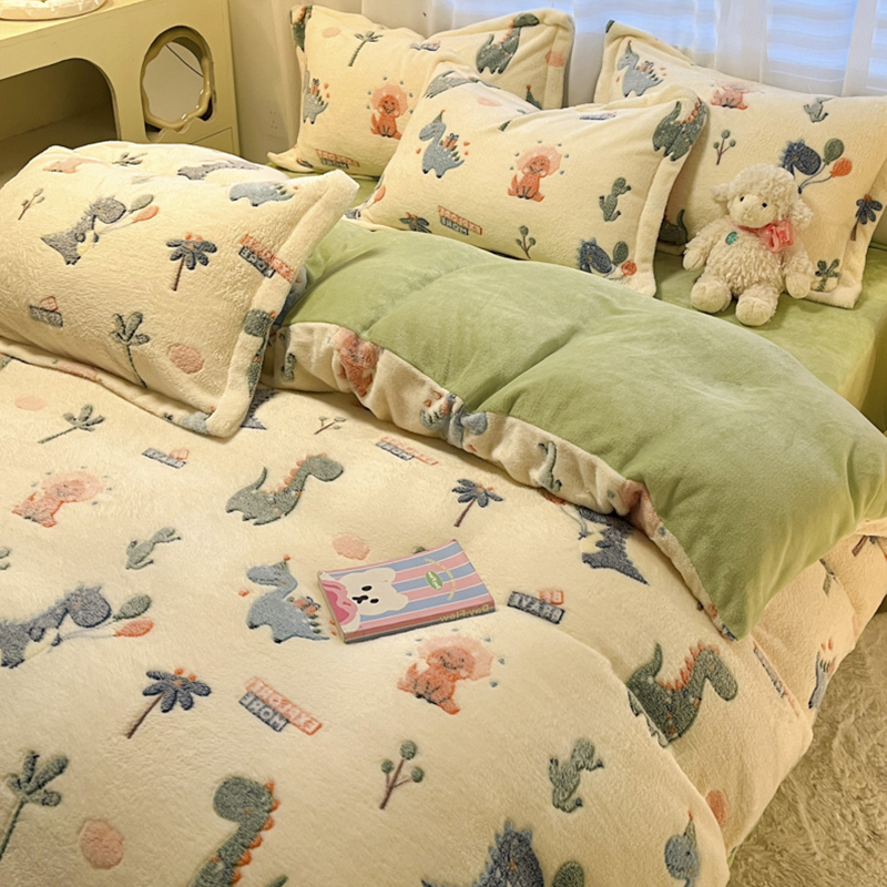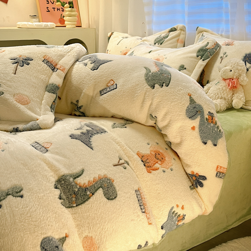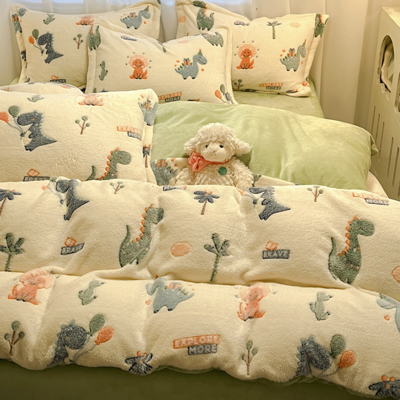 韩巢家纺 2024新款加厚雪花绒印花单件被套-风格一(提供卖家秀 ) 恐龙宝贝(绿)