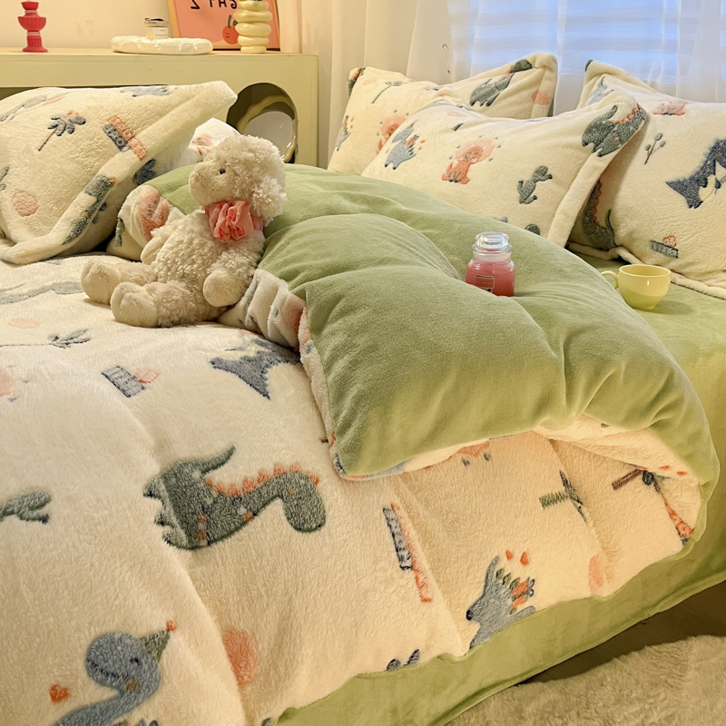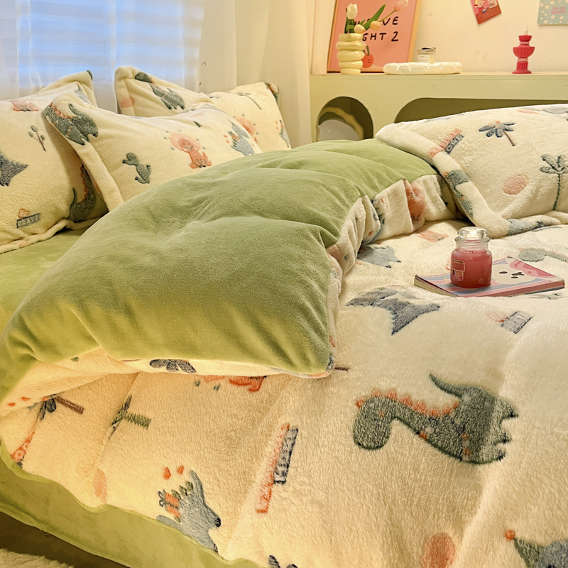 • 91家纺网 家纺一手货源 找家纺 韩巢家纺 2024新款加厚雪花绒印花单件被套-风格一(提供卖家秀 ) 恐龙宝贝(绿)