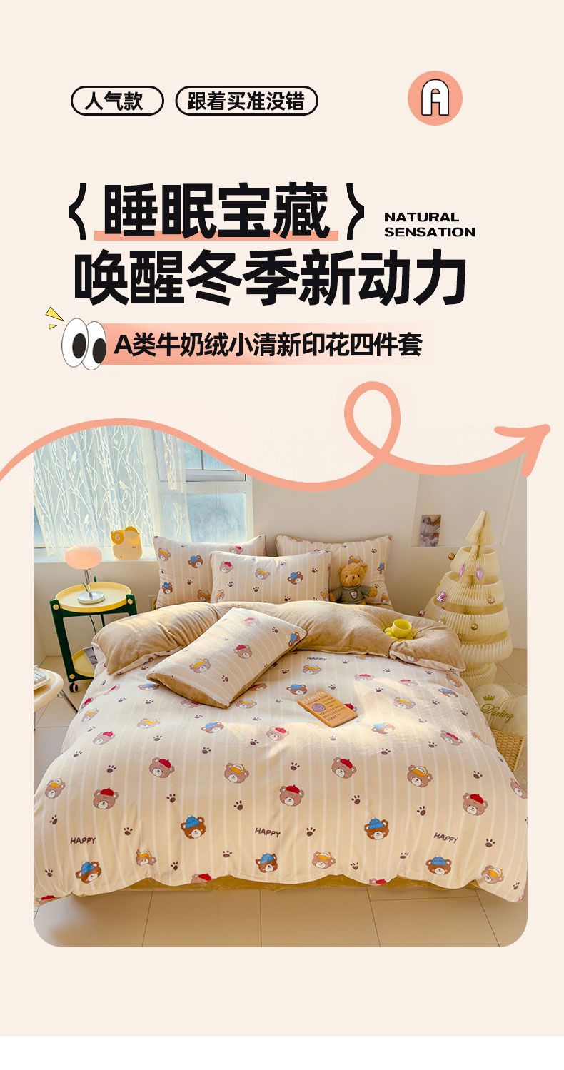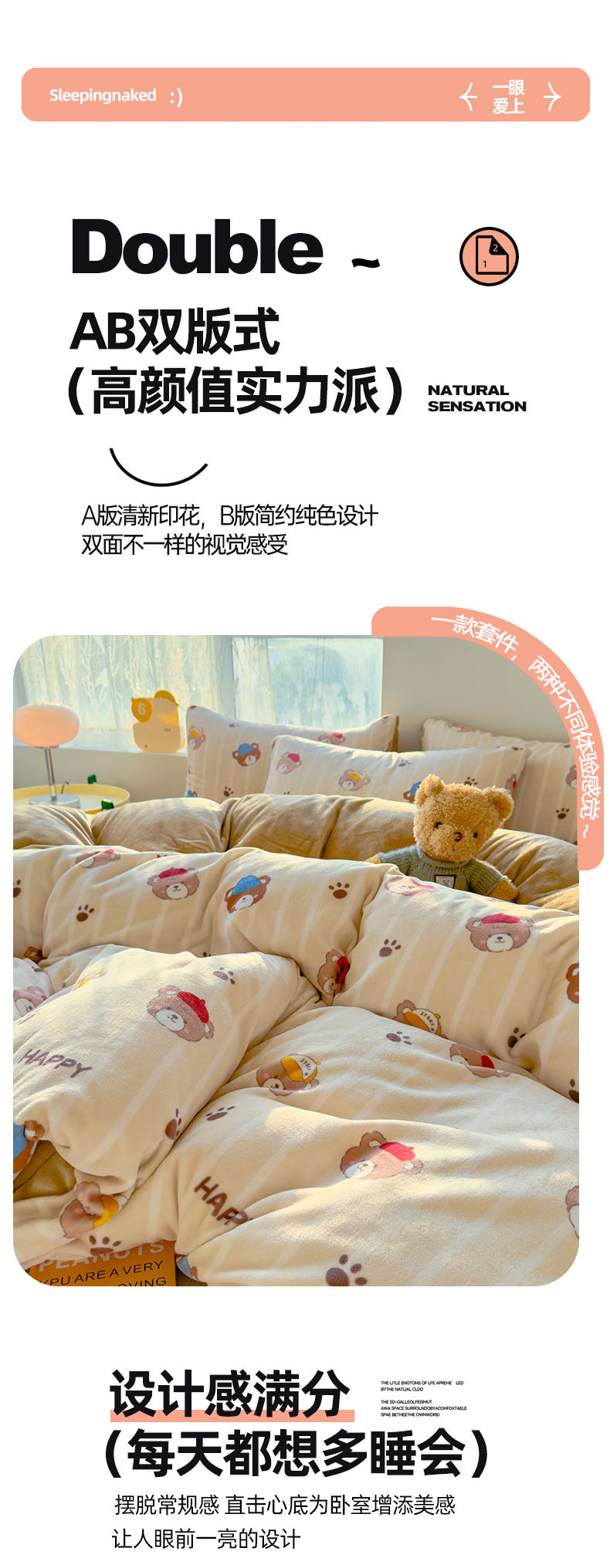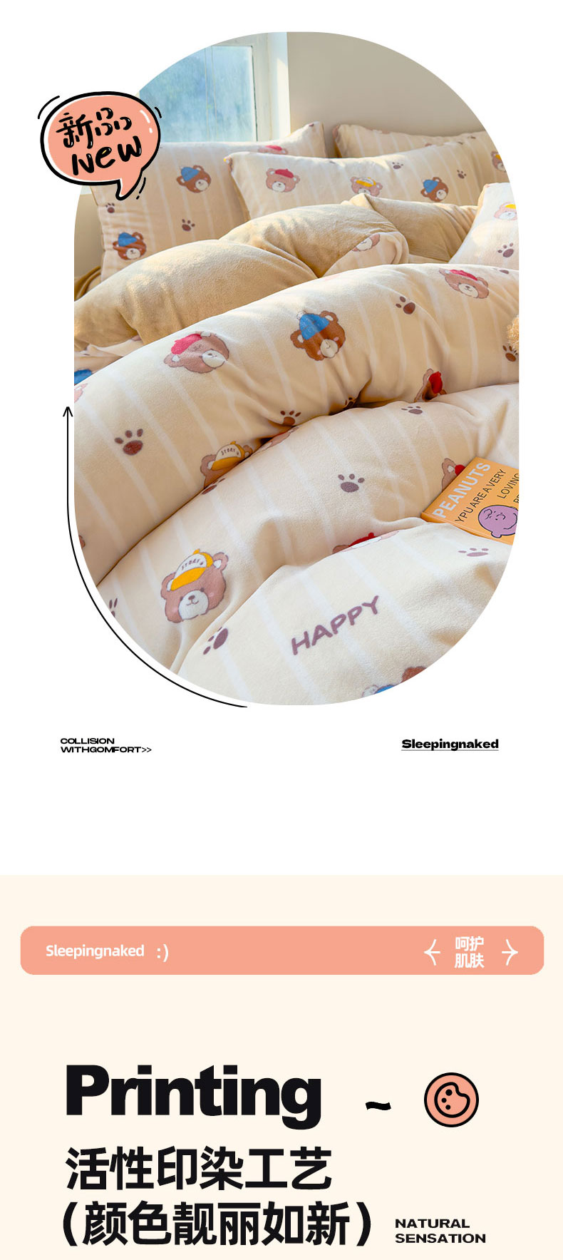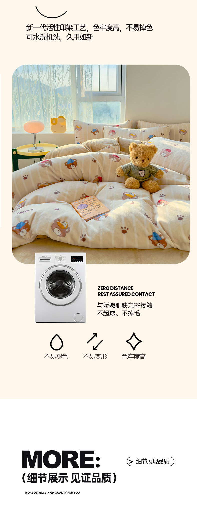 当前位置: 91家纺网 > 商品网购 > 床品套件 > 四件套 > 牛奶绒四件套 > 灰鲸 2025新款牛奶绒小清新印花四件套 快乐小熊