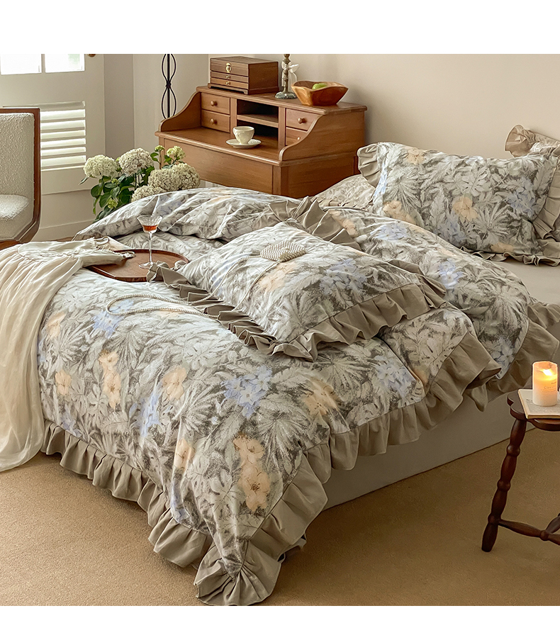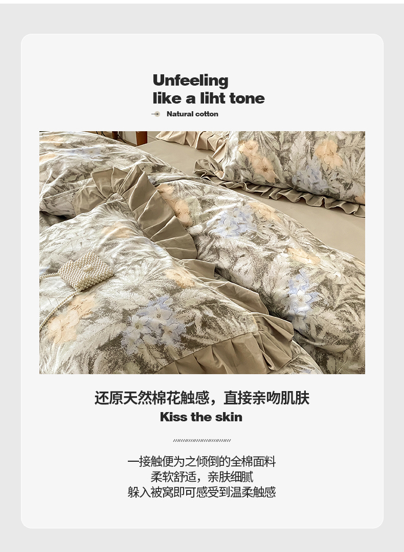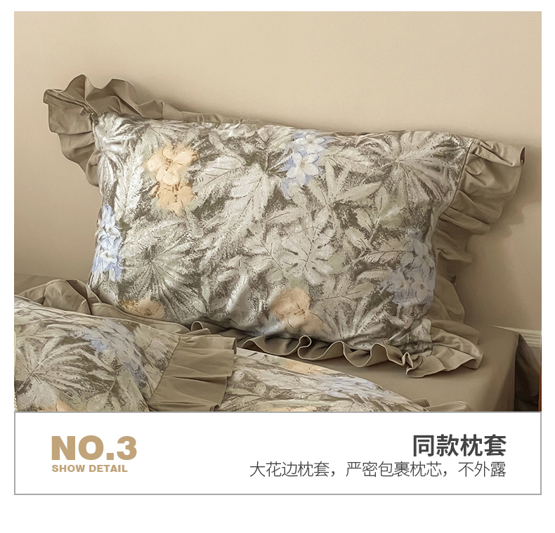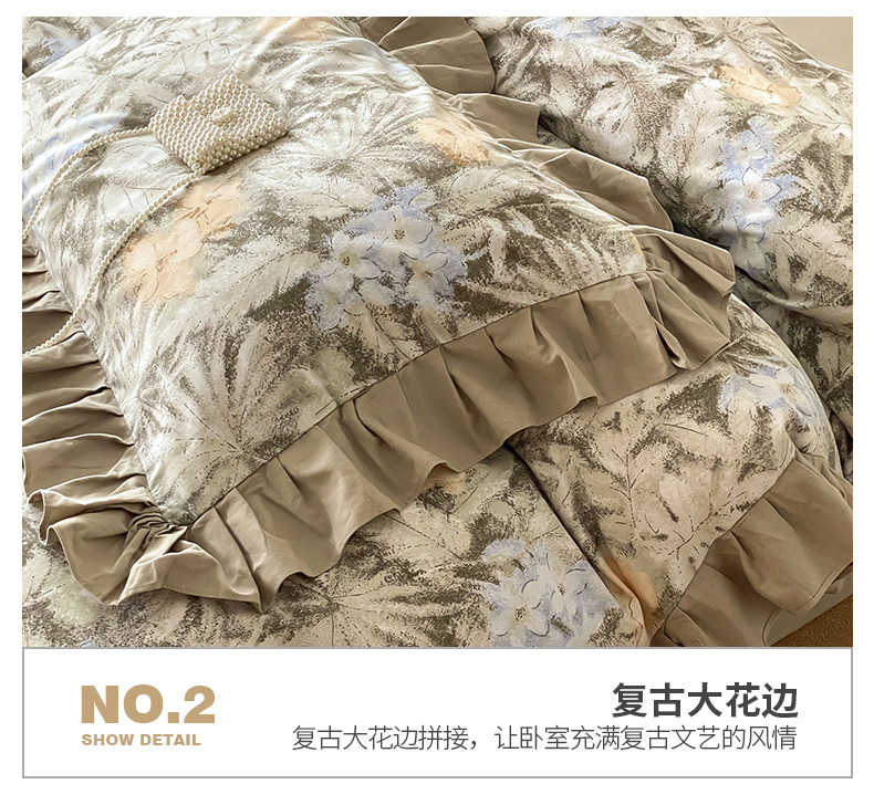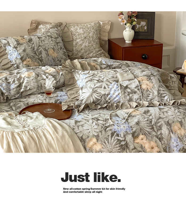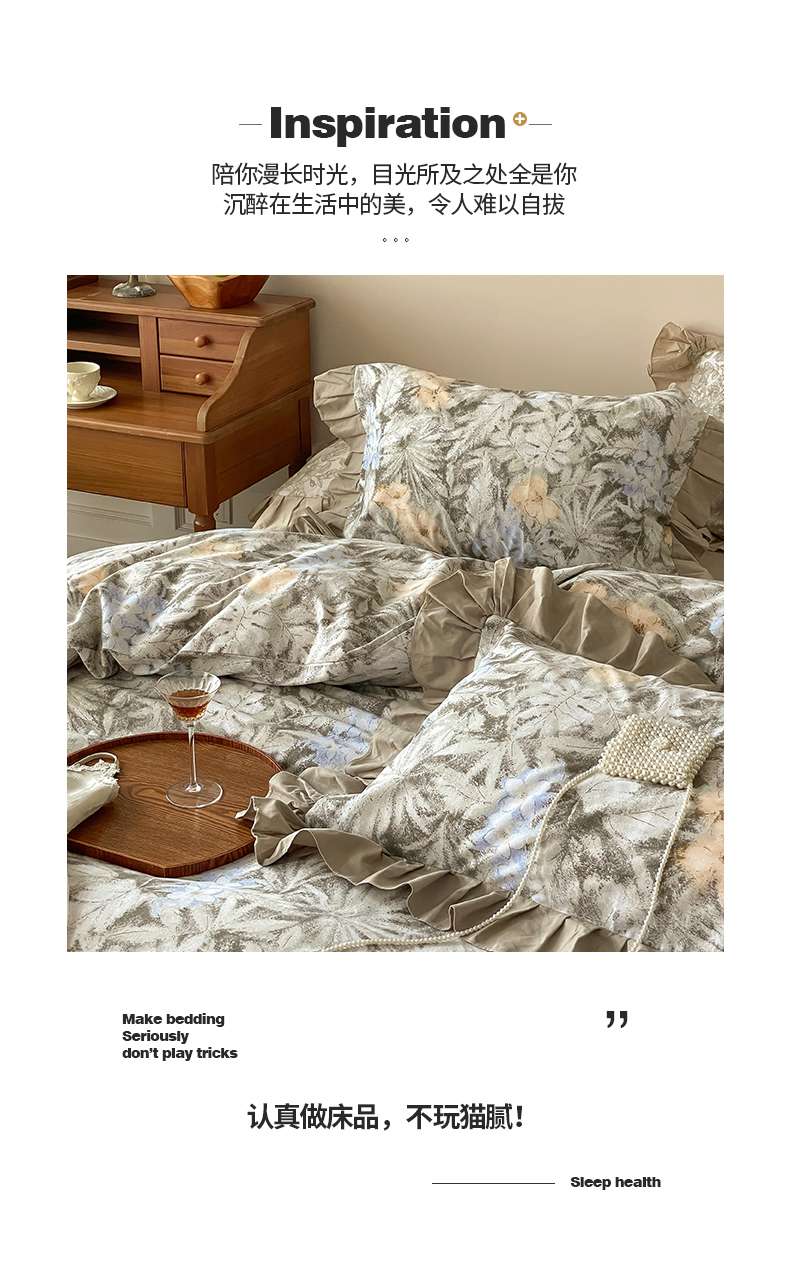 (总)窝米 2025新款数码印花100支长绒棉纯棉工艺花边款四件套-晚意,晚意