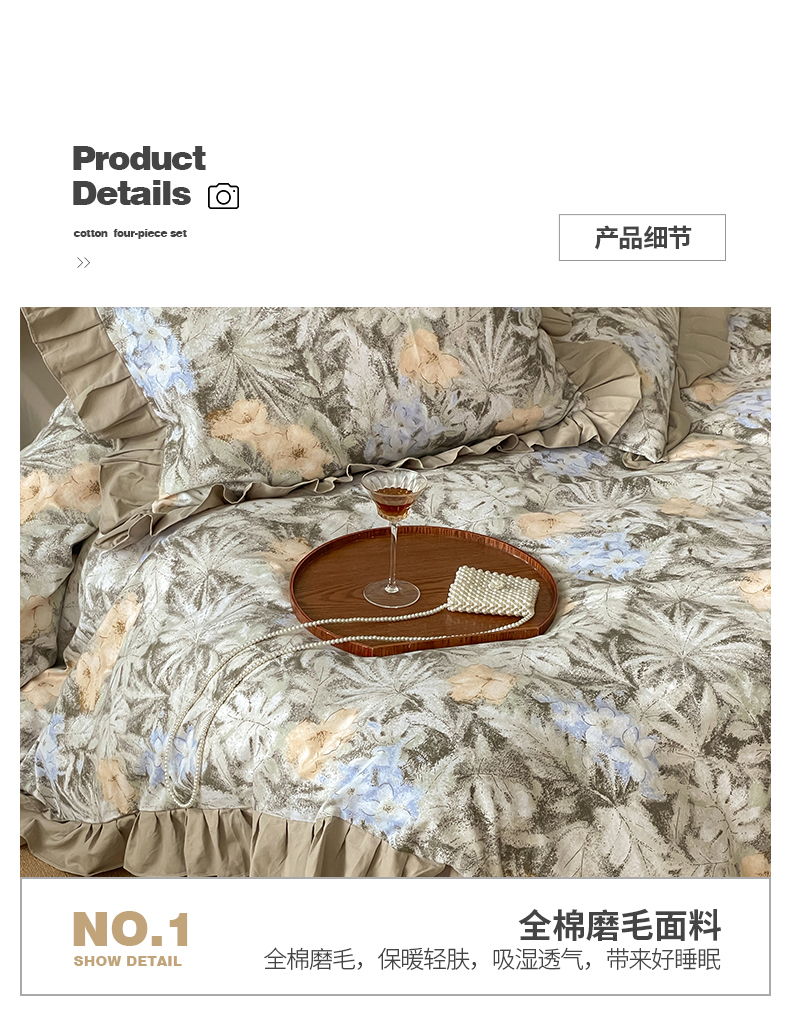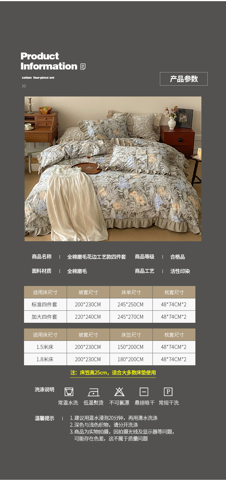 商品名称:窝米 2024新款全棉磨毛花边工艺款四件套 秋雅