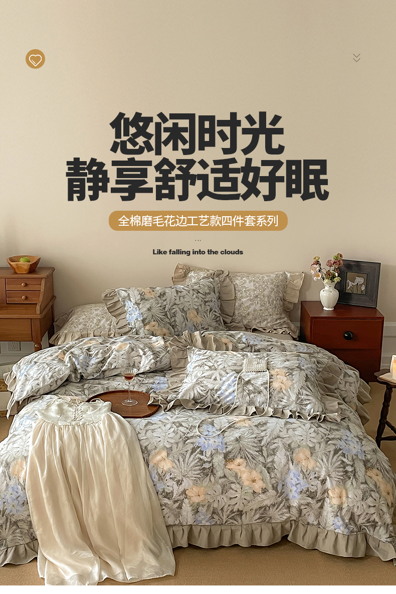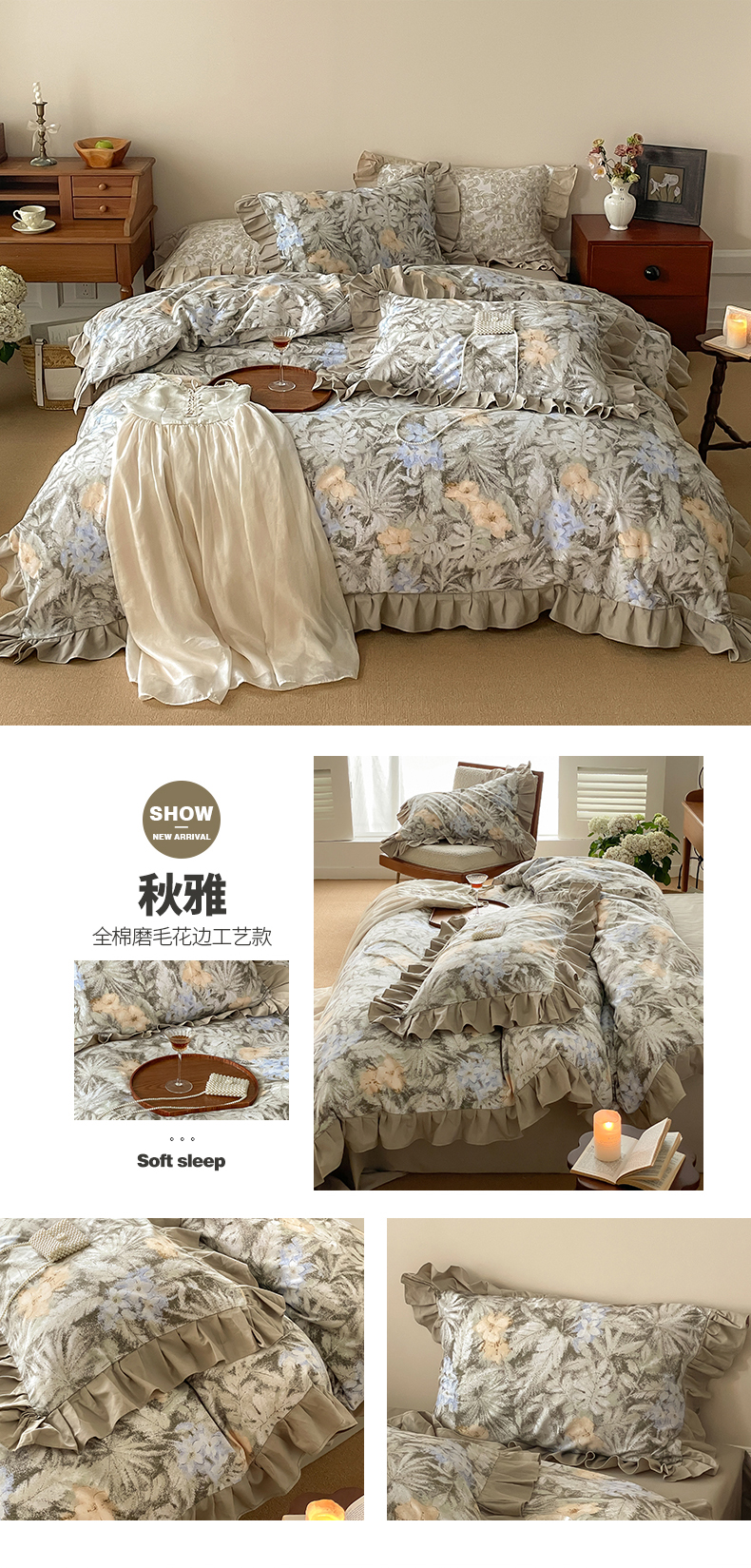 窝米 2024新款全棉磨毛花边工艺款四件套 秋雅