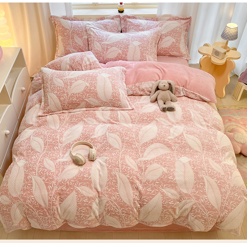 名兮家居 2024新款立体高克重加厚浮雕绒牛奶绒单被套 千叶-粉
