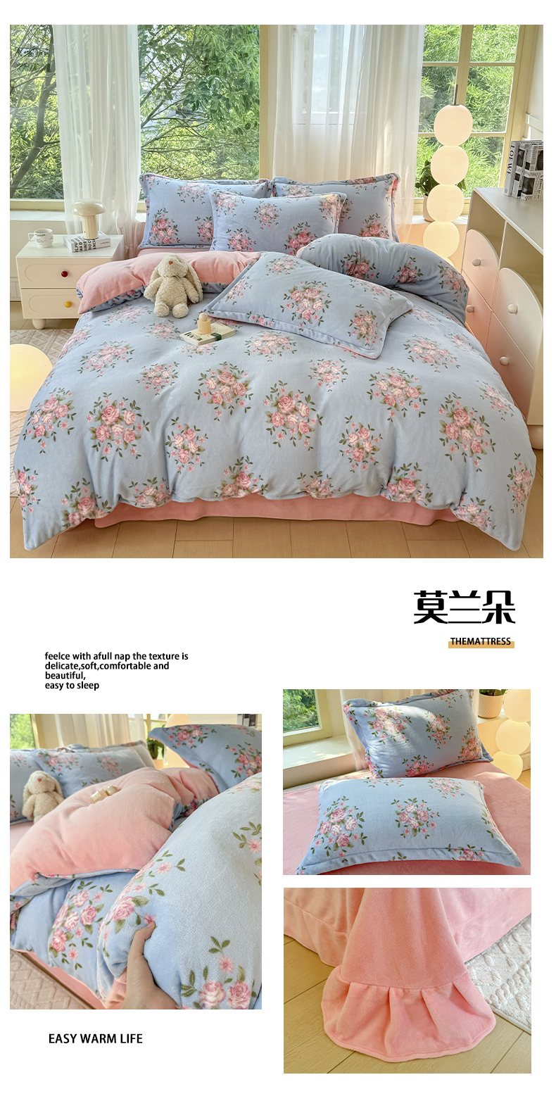 富之航家纺 2024新款高克重小清新牛奶绒四件套 莫兰朵