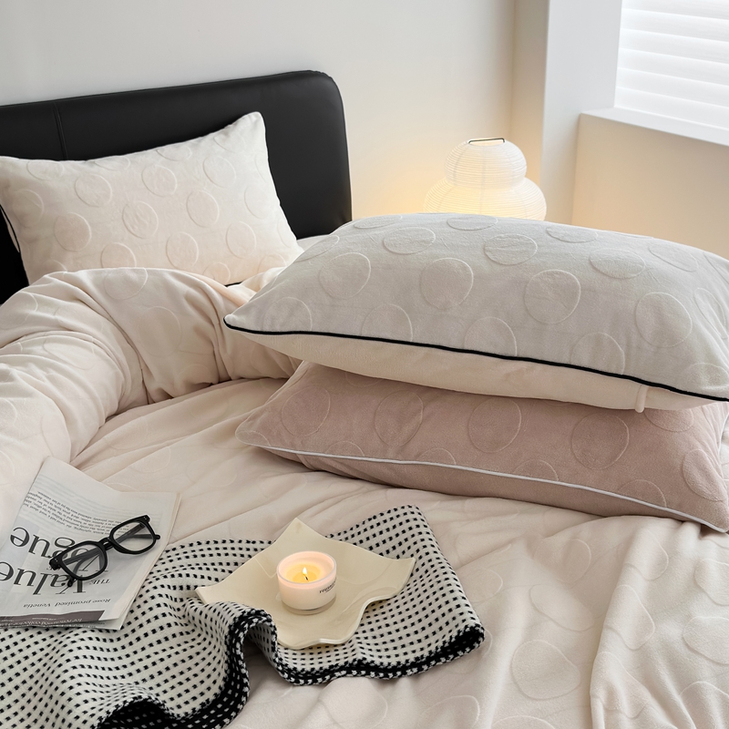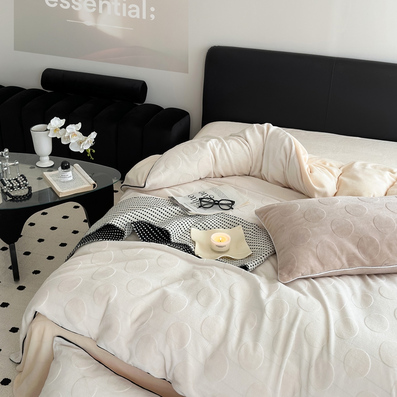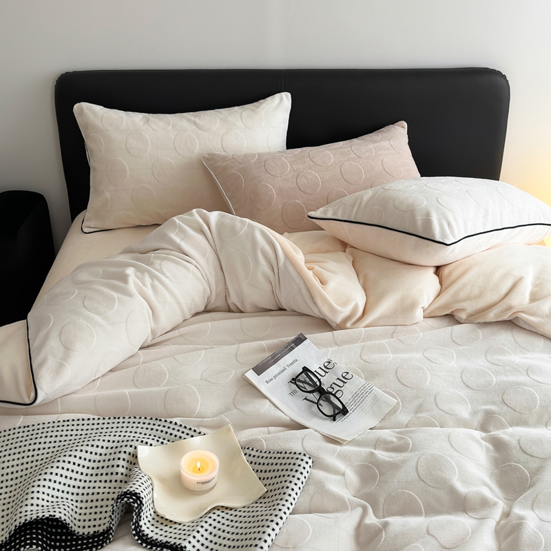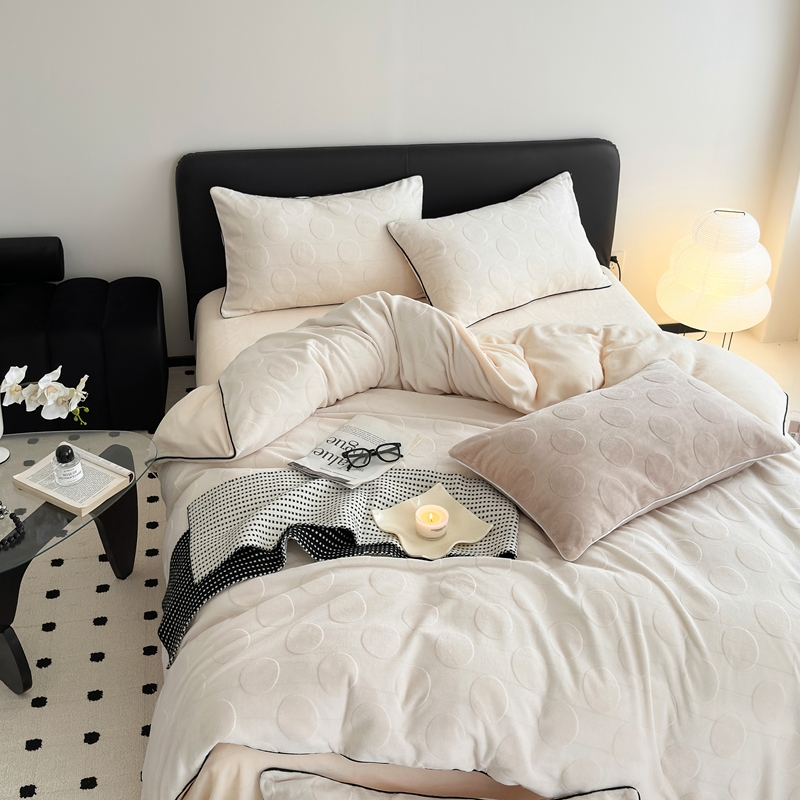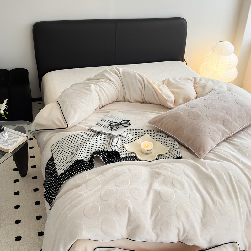 潘朵拉家纺 2024新款雕花波点系列牛奶绒四件套 波尔卡-奶白
