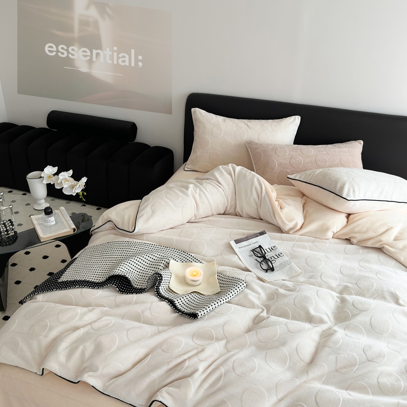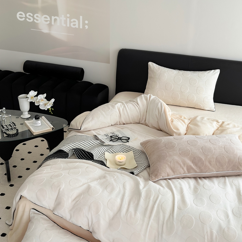 商品名称:潘朵拉家纺 2024新款雕花波点系列牛奶绒四件套 波尔卡-奶白