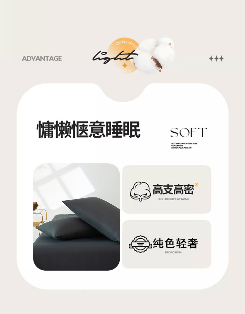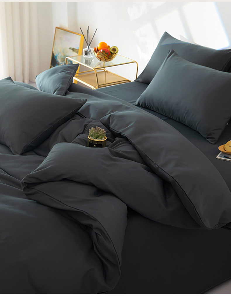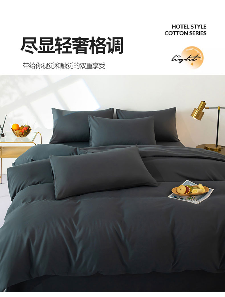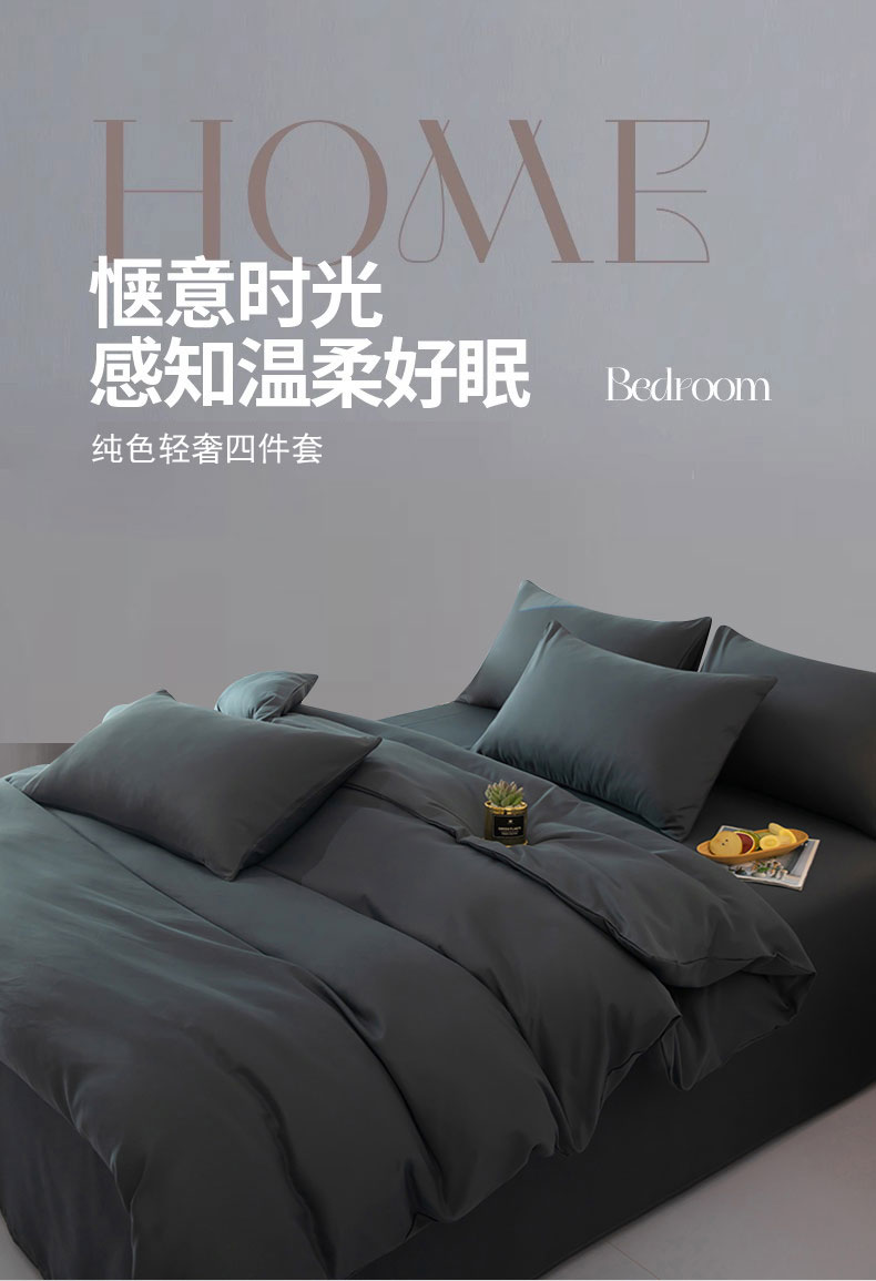 商品名称:梓依家纺 2024新款亲肤磨毛纯色拼色轻奢系列四件套 深灰