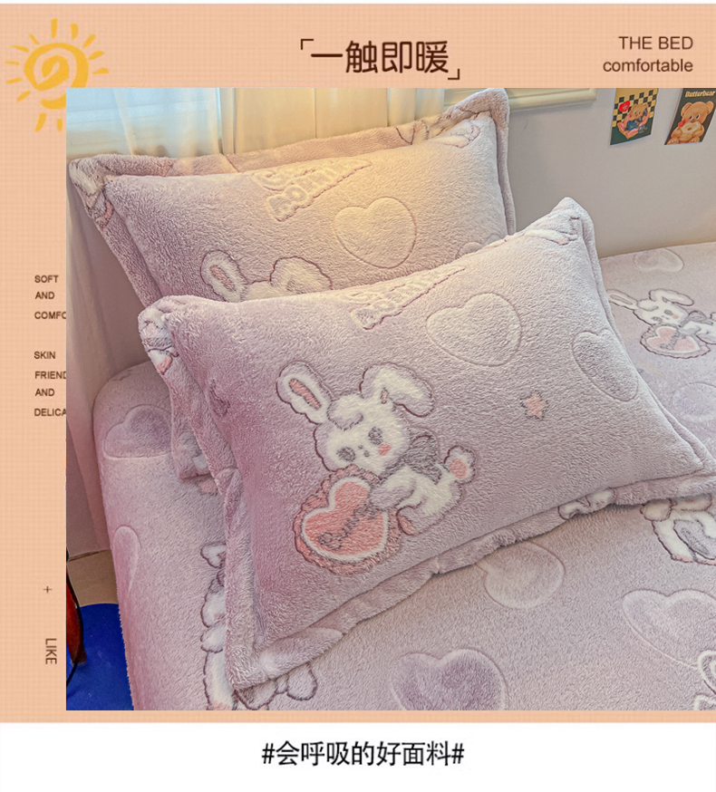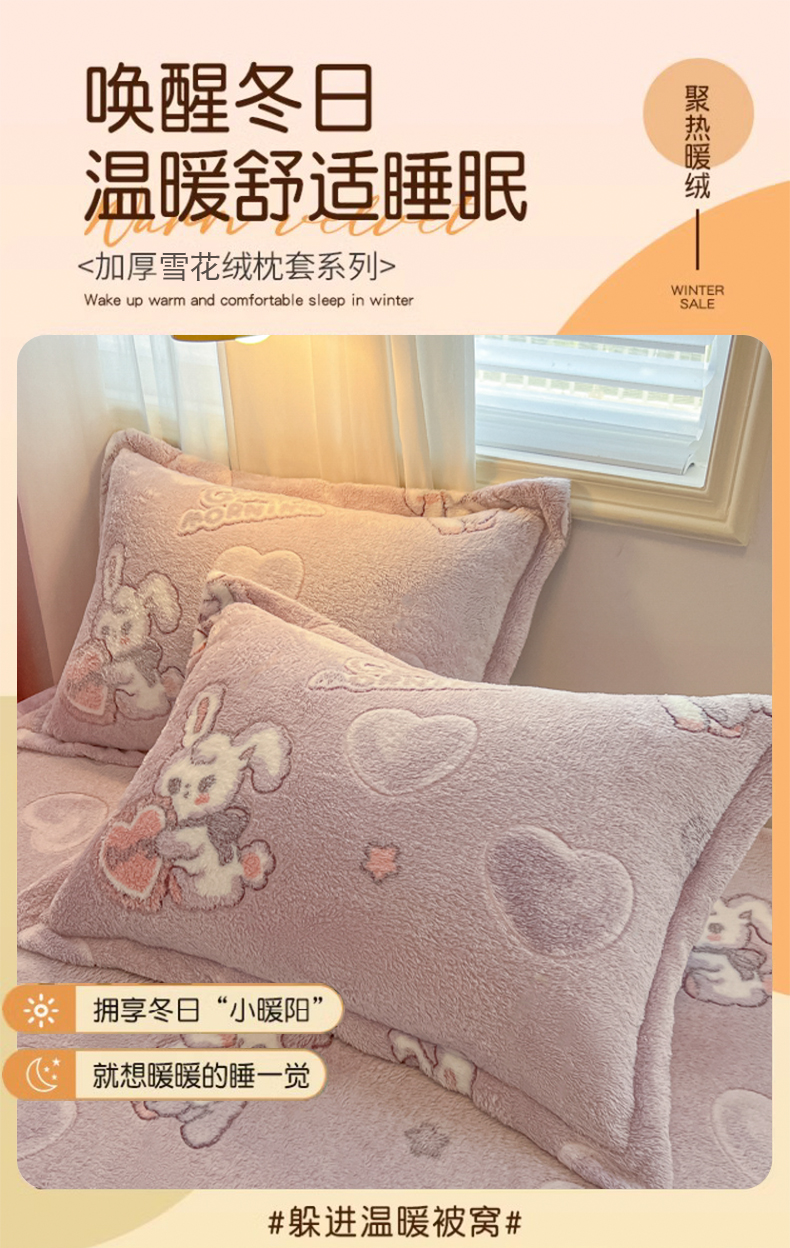 韩巢家纺 2024新款雪花绒枕套一对装 爱心兔(紫)