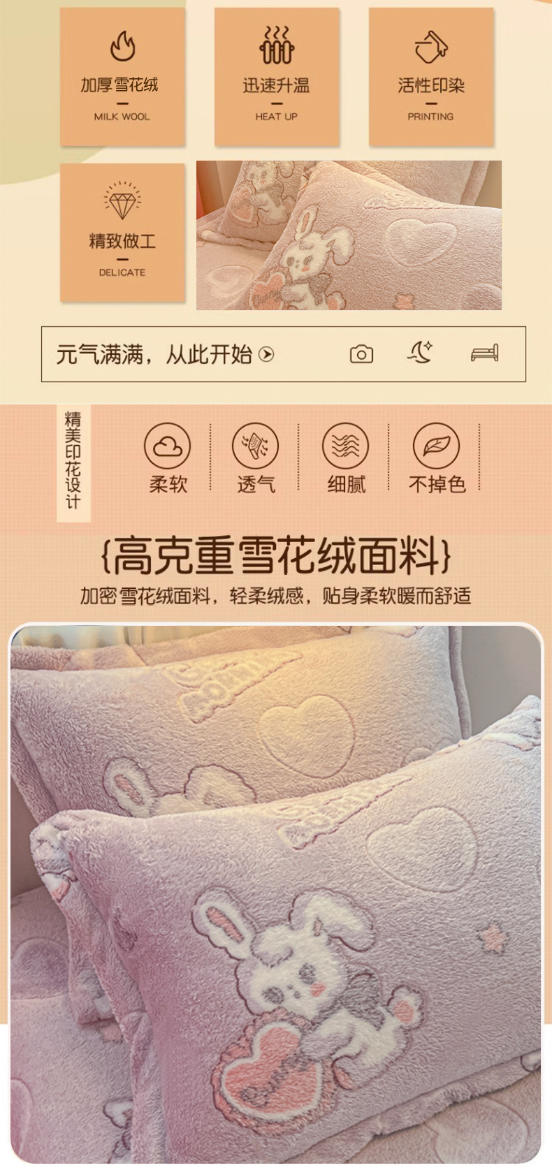 商品名称:韩巢家纺 2024新款雪花绒枕套一对装 爱心兔(紫)