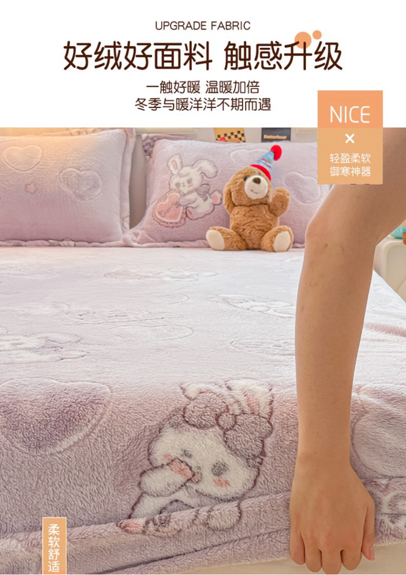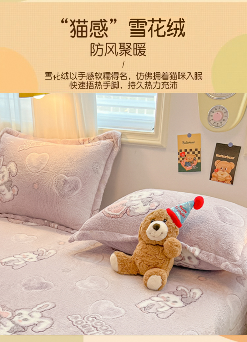 (总)韩巢家纺 2025新款高克重雪花绒牛奶绒四件套系列,郁金香,爱心熊(绿),巴丽娜,大白鹅,大耳朵兔,蝶雅,花花世界,灰色轨迹,米菲,七彩,田园兔(黄),小怪兽,幸运兔,英伦熊
