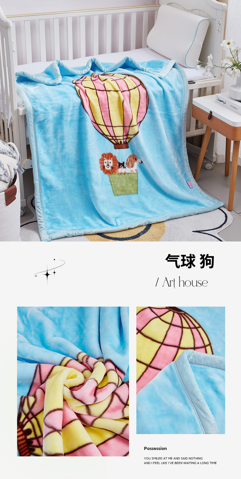 凯轩毛毛毯毯子网销专供 2024新款加厚保暖儿童印花云毛毯毯子系列 气球 狗