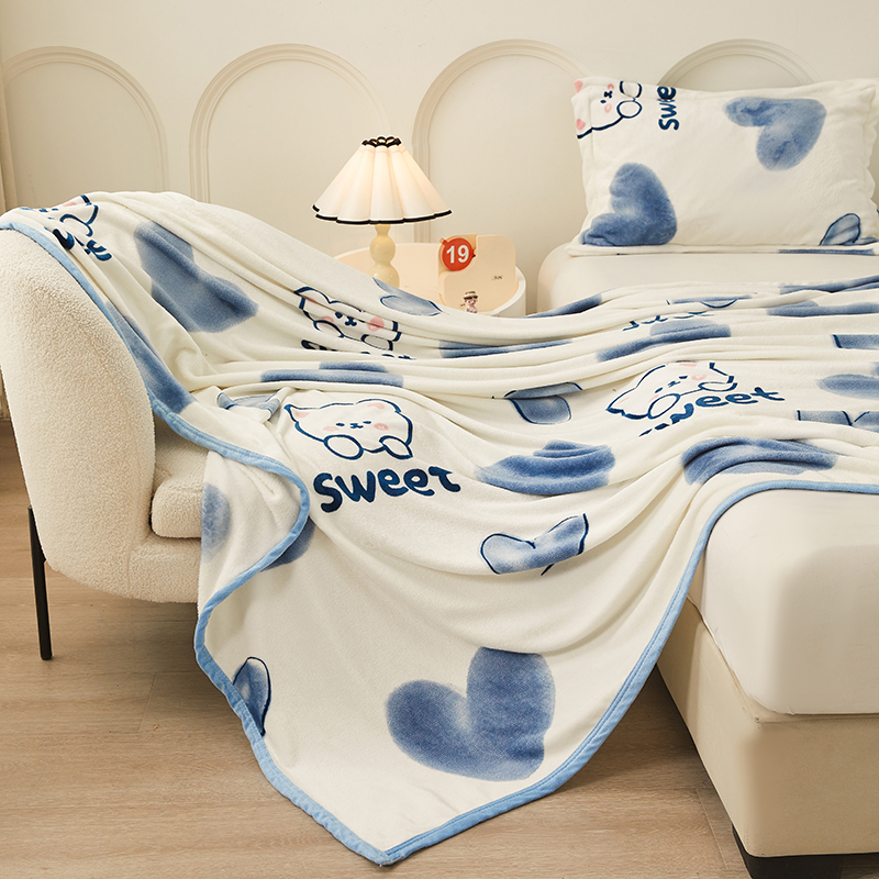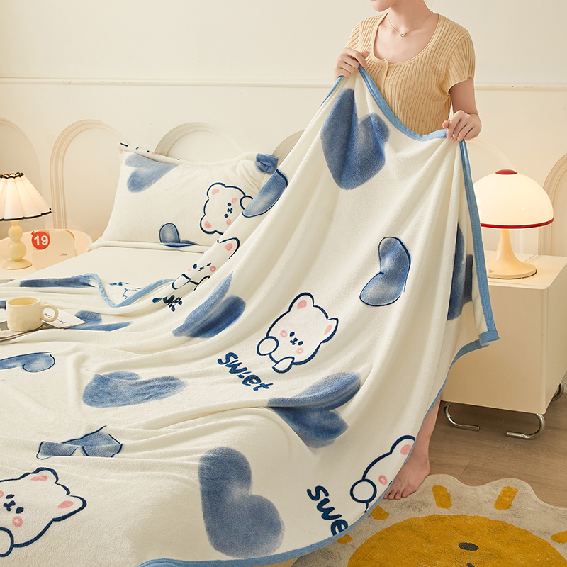 千荨 2024新款多功能牛奶绒毛毯 蓝心小熊