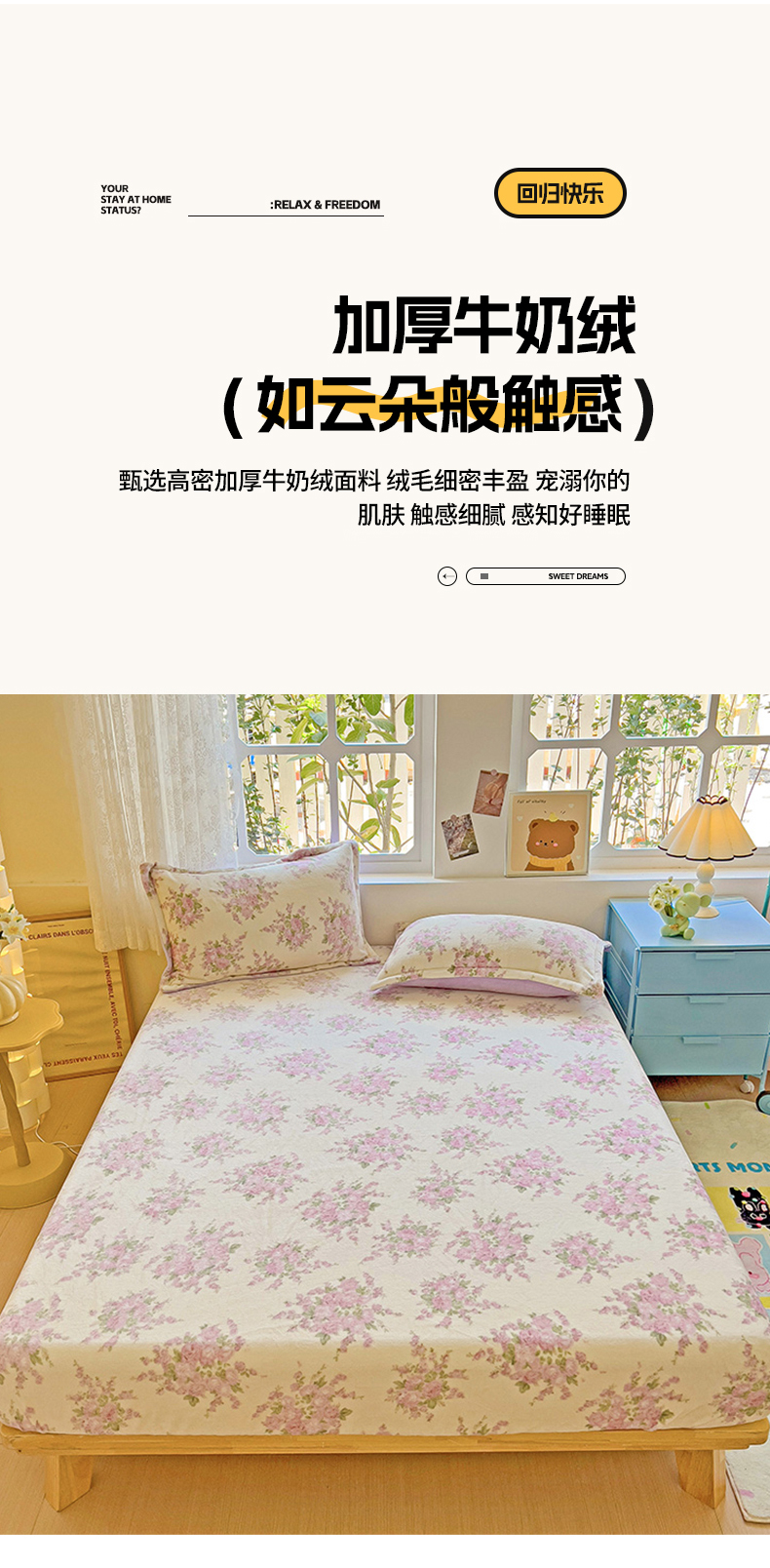 卡普二店 2024新款爆款加厚卡通小清新全棉纯棉学生宿舍三件套床笠隔天可拿 快乐追梦,快乐追梦
