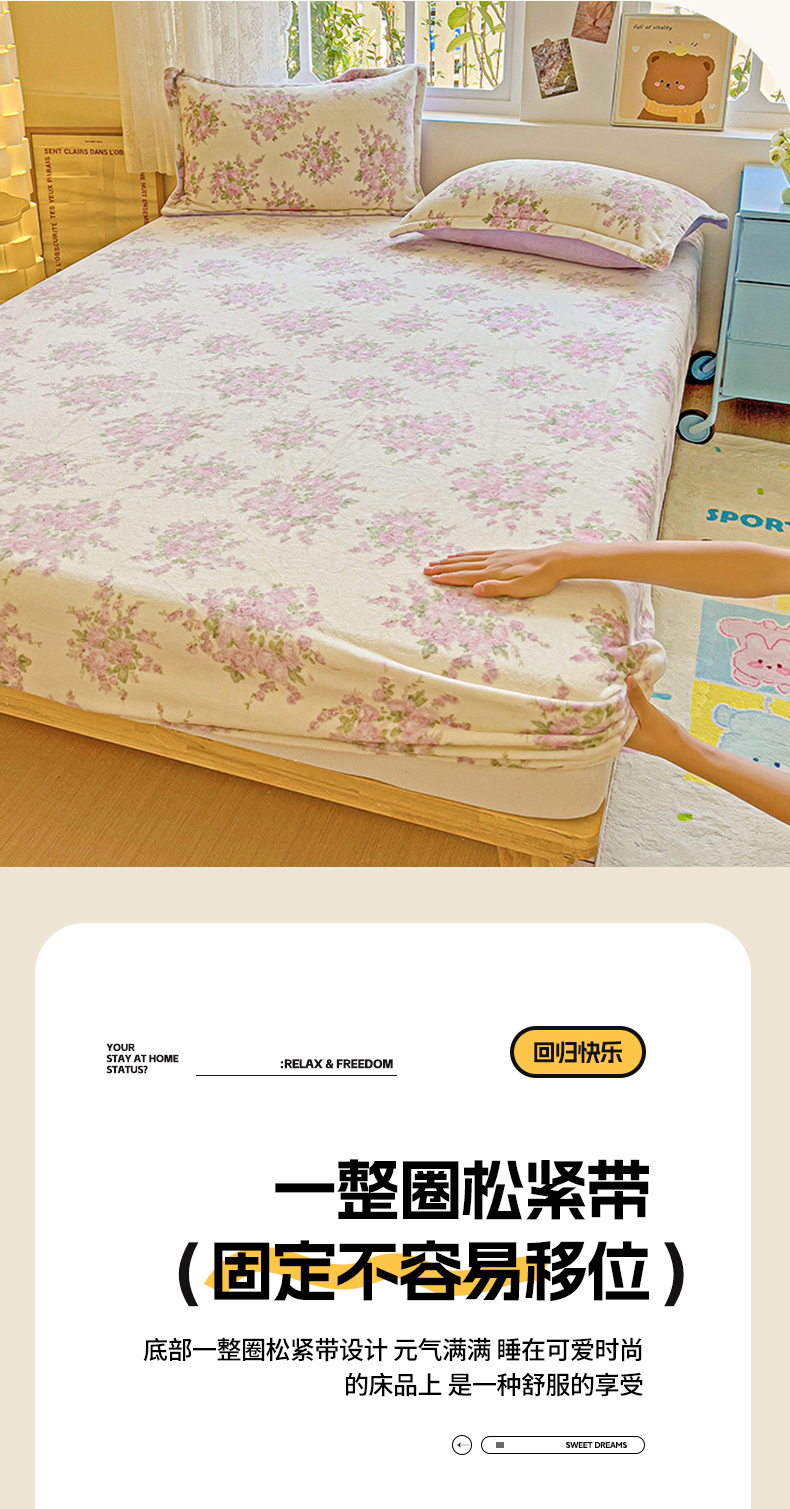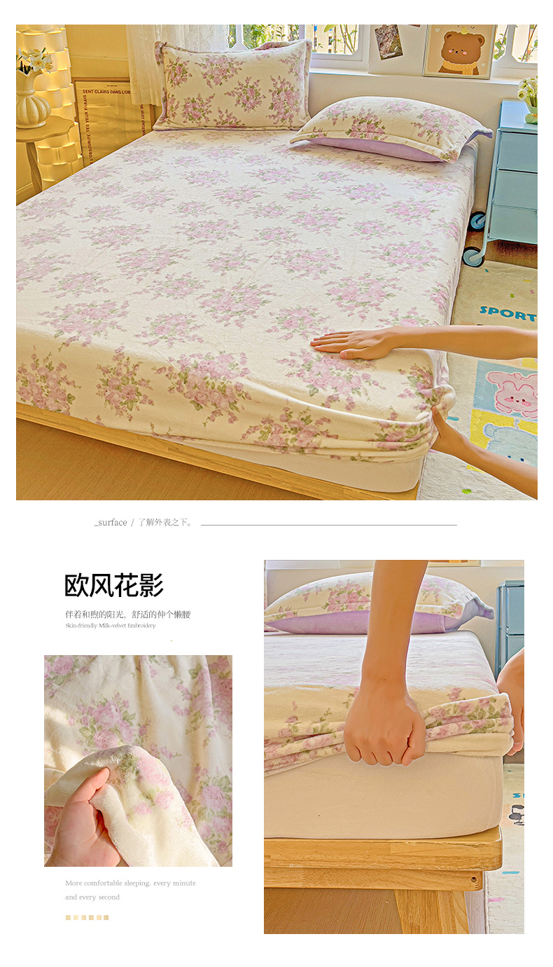 商品名称:卡普二店 2024新款牛奶绒印花单床笠 欧风花影