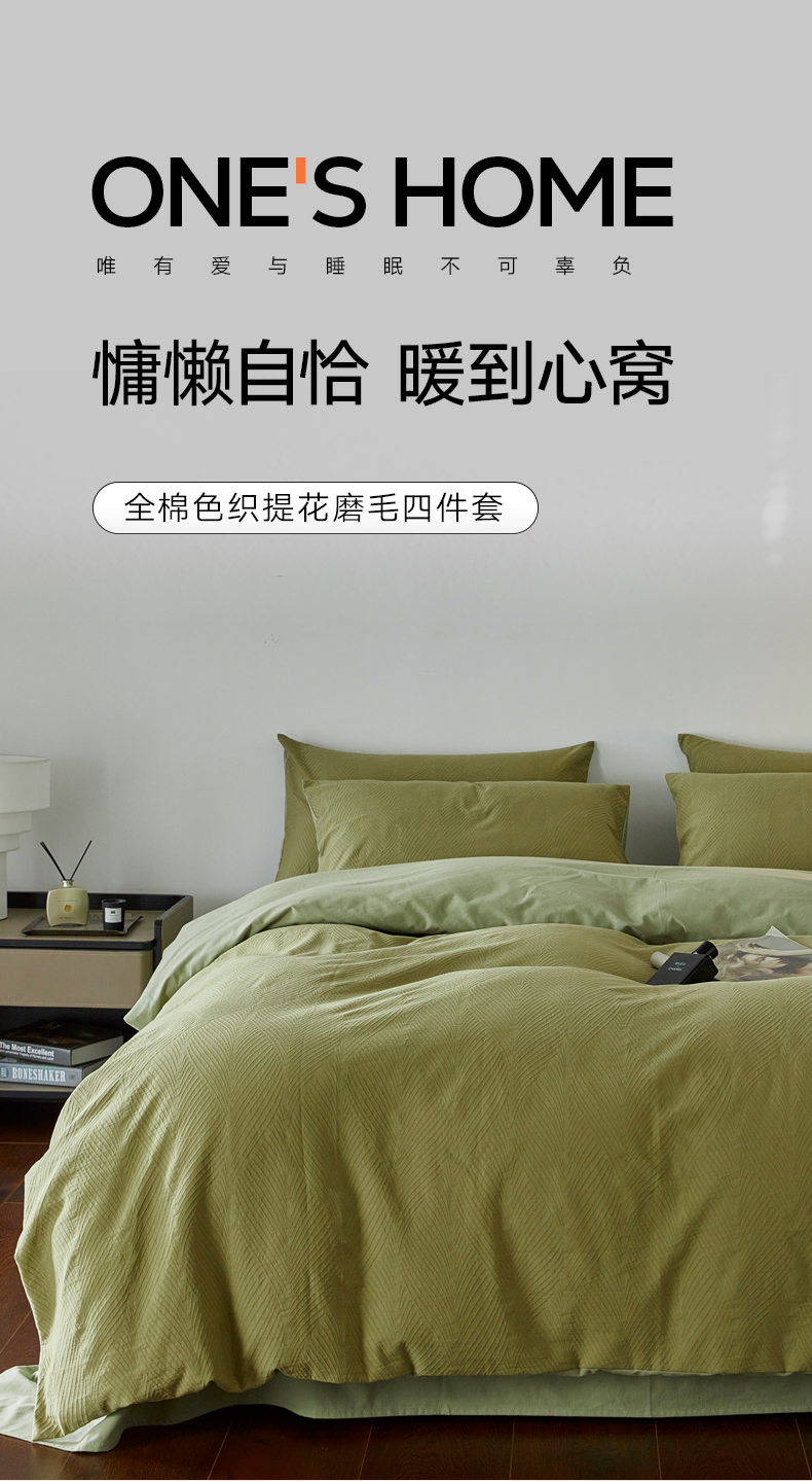2024新款全棉色织提花磨毛欧佩斯四件套-场景二 欧佩斯-松茶