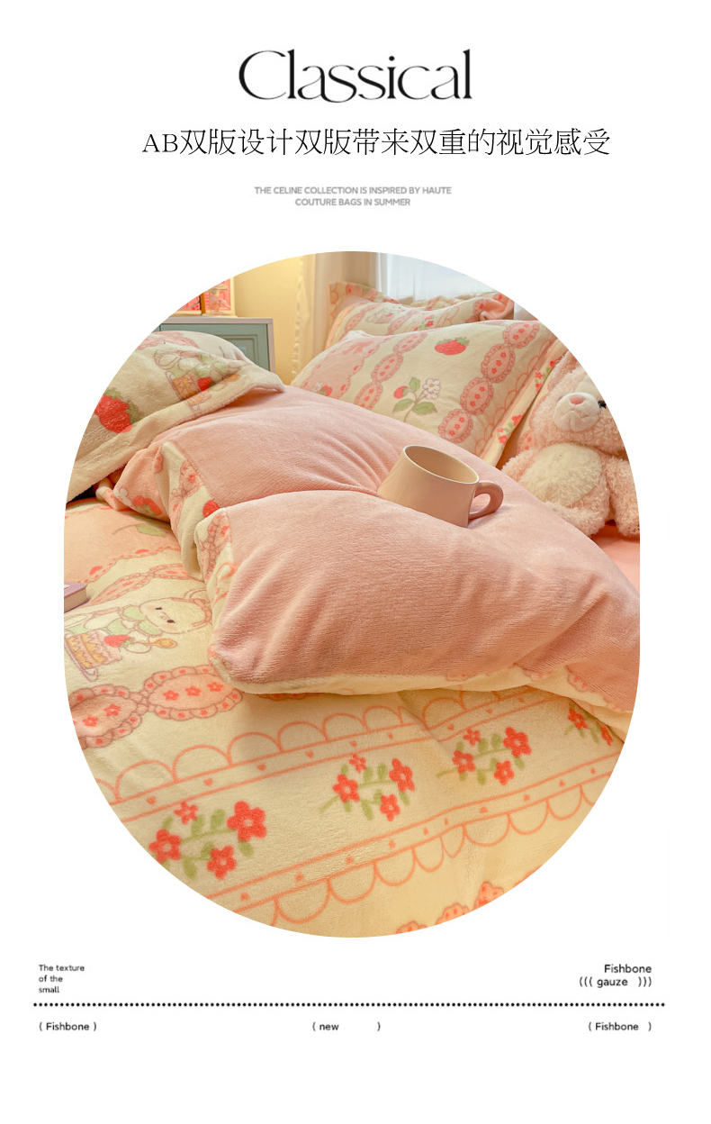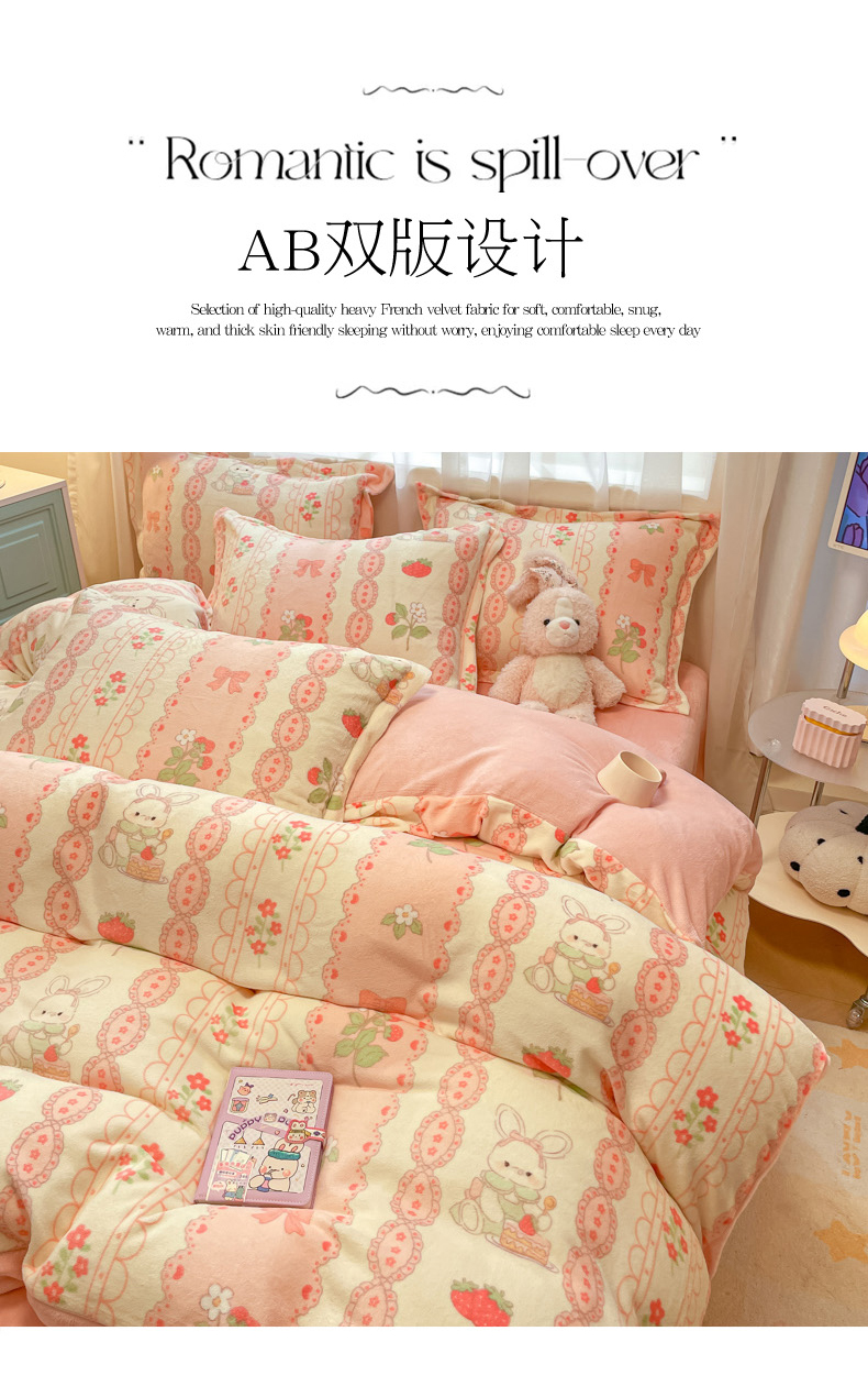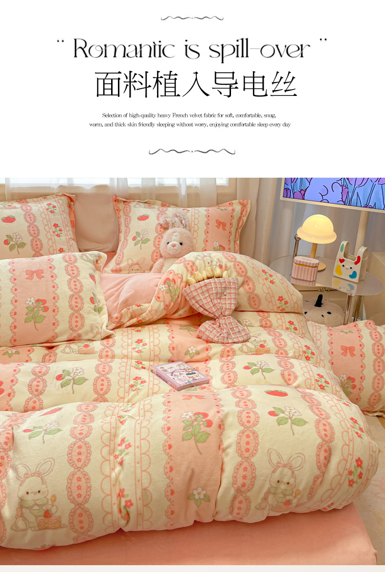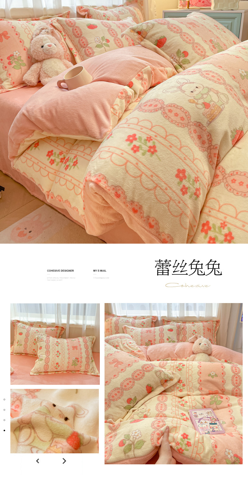 当前位置: 91家纺网 > 商品网购 > 床品套件 > 四件套 > 牛奶绒四件套 > 柒月 2024新款小清新牛奶绒印花加厚保暖四件套 蕾丝兔兔