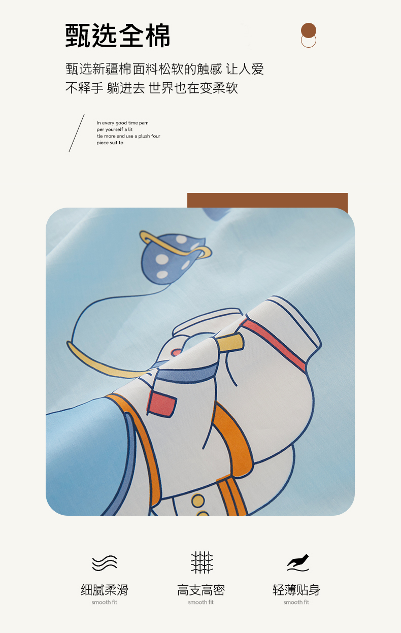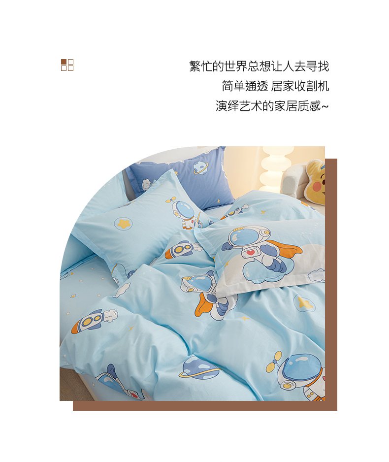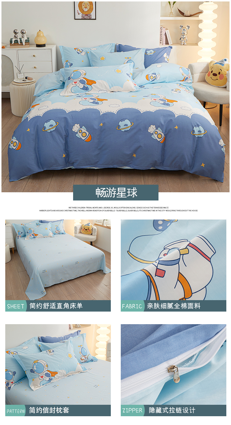 商品名称:钰伶 简约全棉12868印花纯棉单被套(预留6厘米缩水) 畅游星球