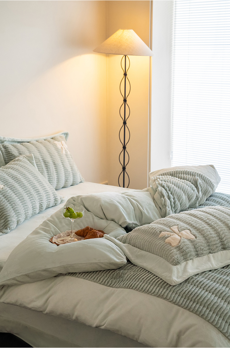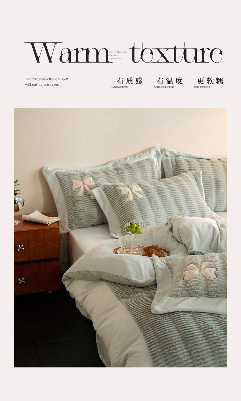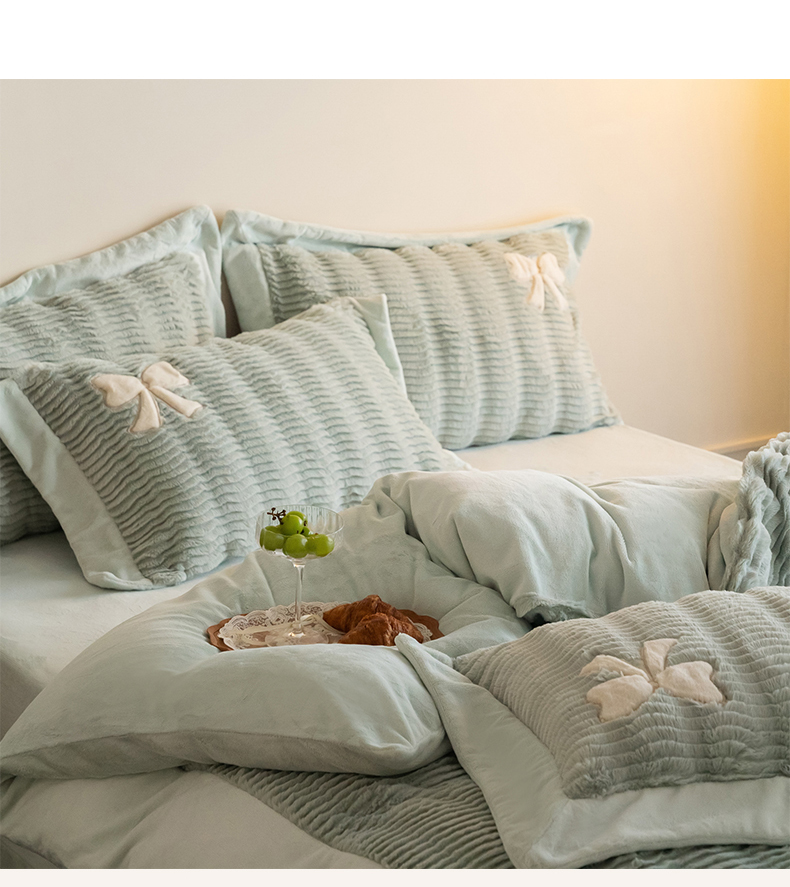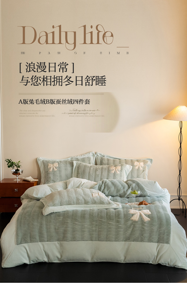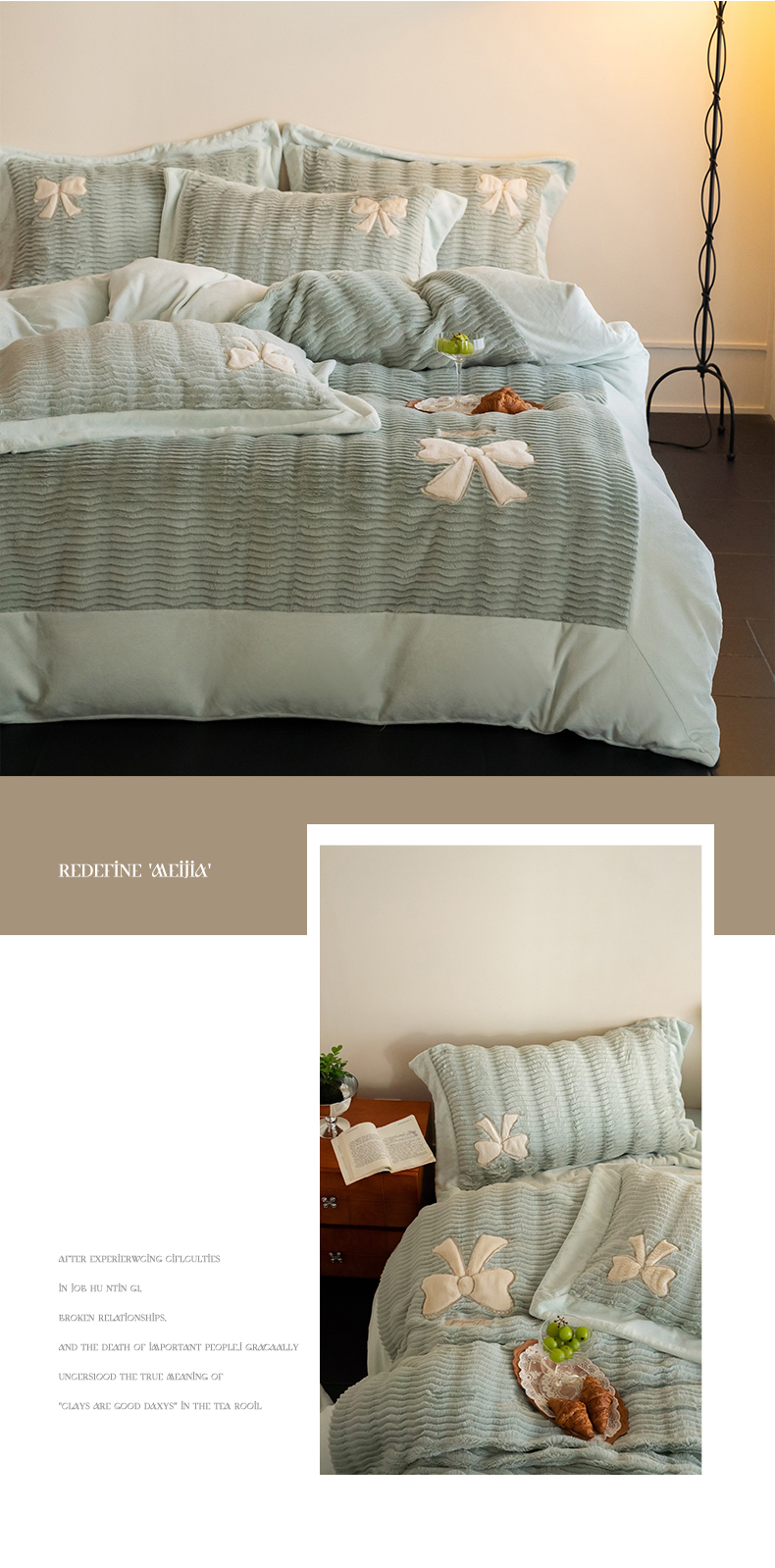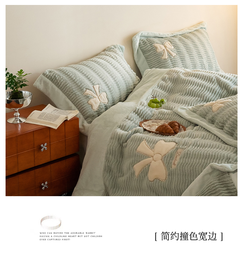 商品名称:2024新款A版B版高克重牛奶绒四件套-艾蒂丝 艾蒂丝-湖蓝