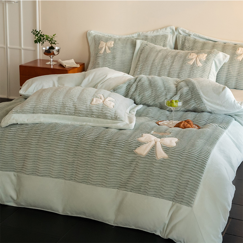 2024新款A版B版高克重牛奶绒四件套-艾蒂丝 艾蒂丝-湖蓝