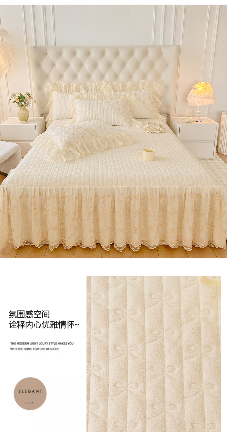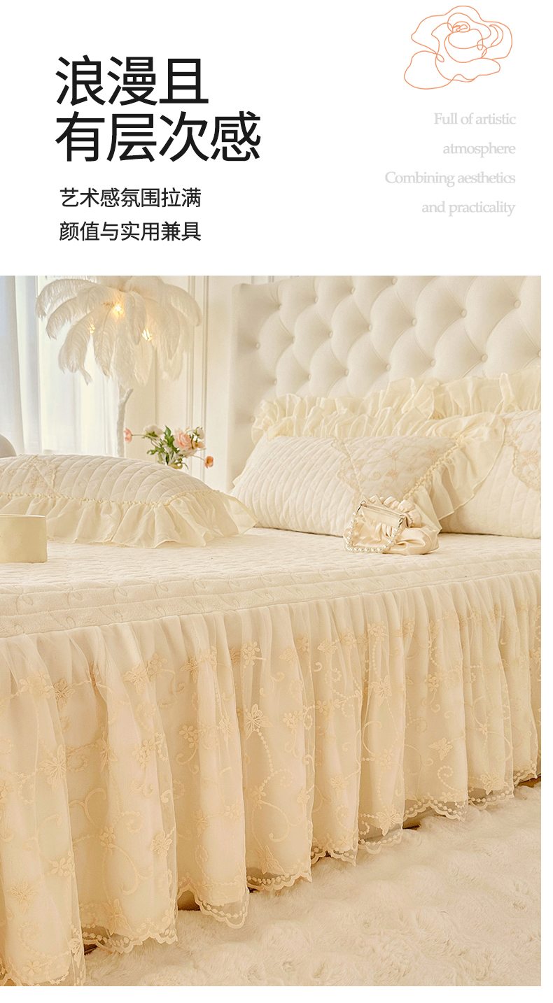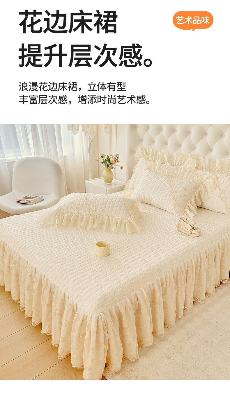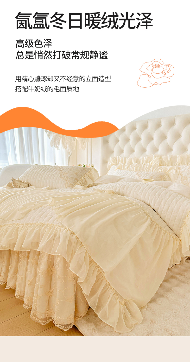 当前位置: 91家纺网 > 商品网购 > 床品套件 > 四件套 > 其它四件套 > 罗艺轩 2024新款高克重牛奶雪纺边床裙四件套-羽蝶 奶昔