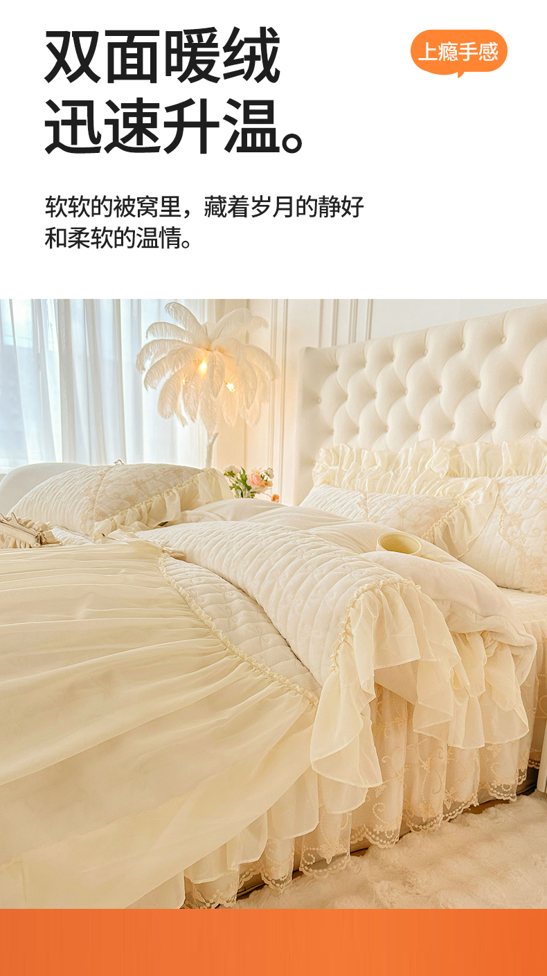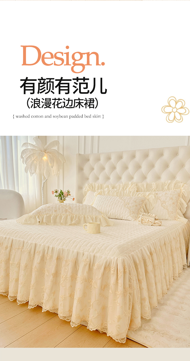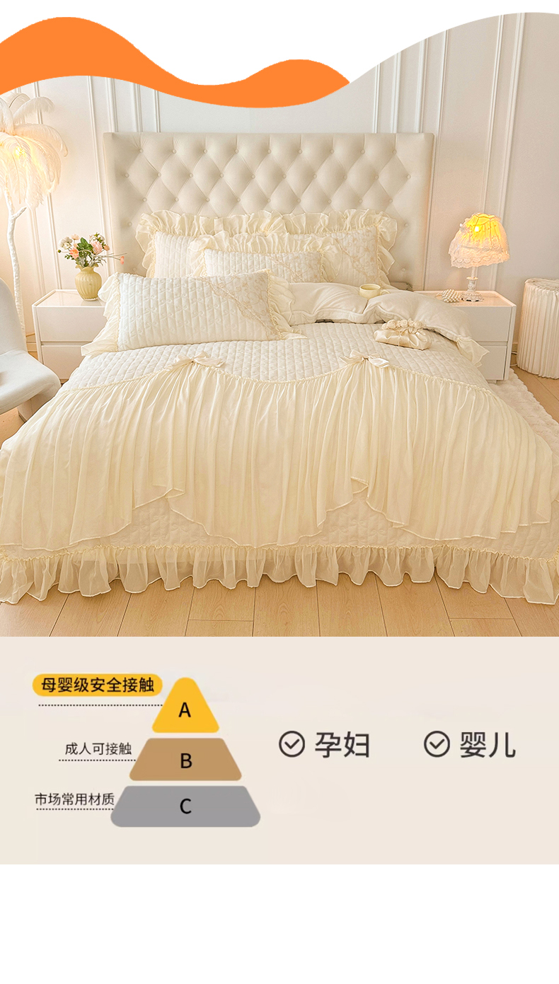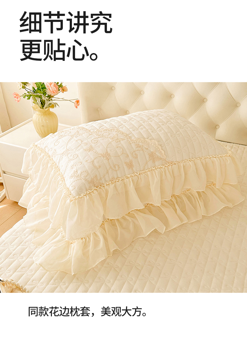 当前位置: 91家纺网 > 商品网购 > 床品套件 > 四件套 > 其它四件套 > 罗艺轩 2024新款高克重牛奶雪纺边床裙四件套-羽蝶 奶昔