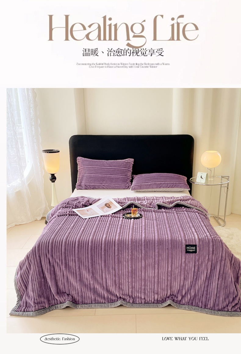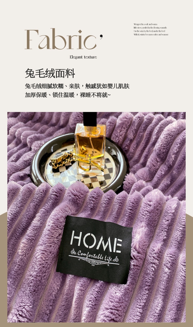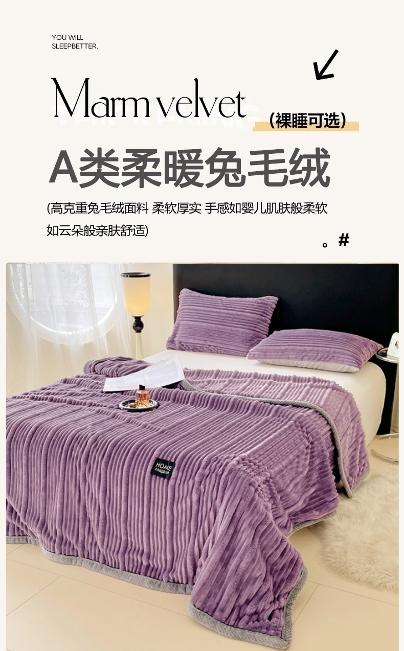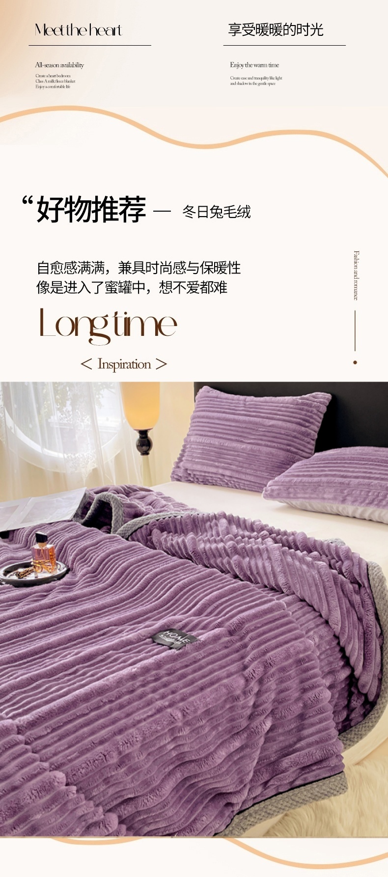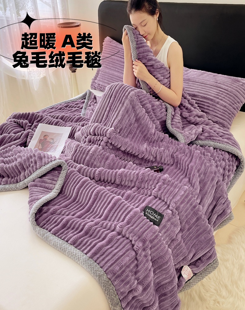 商品名称:梦舒羽 2025新款子母条兔毛绒毛毯宿舍牛奶绒小被毯 魅力紫