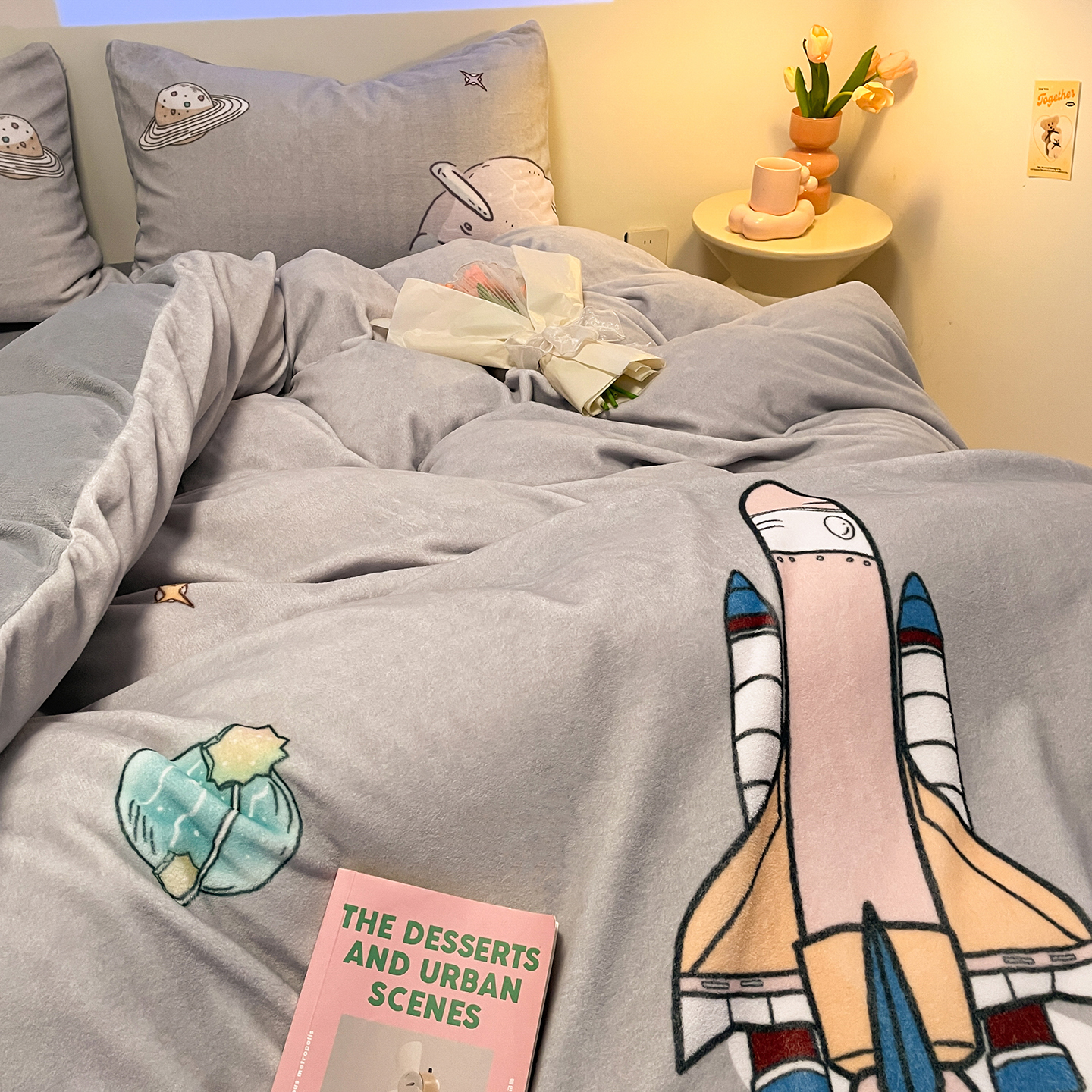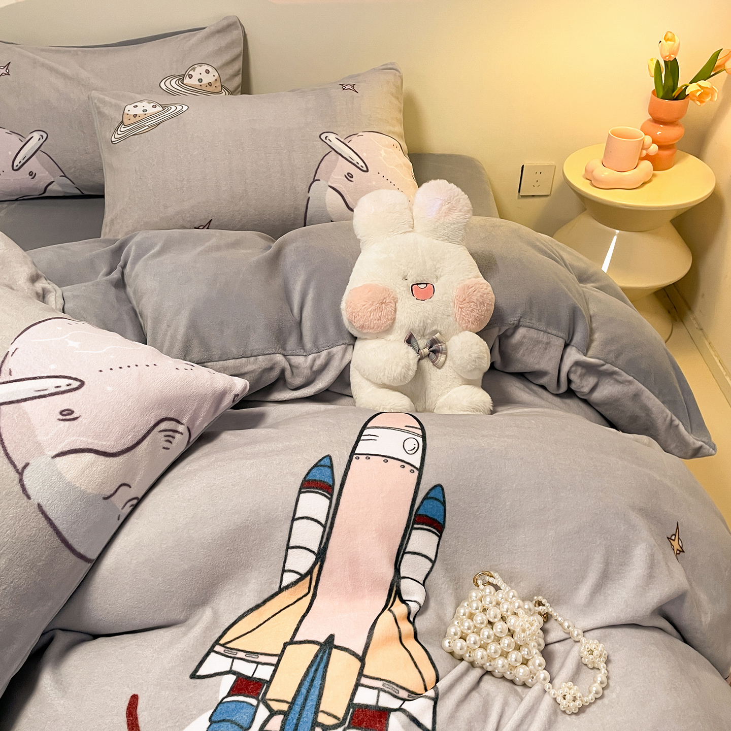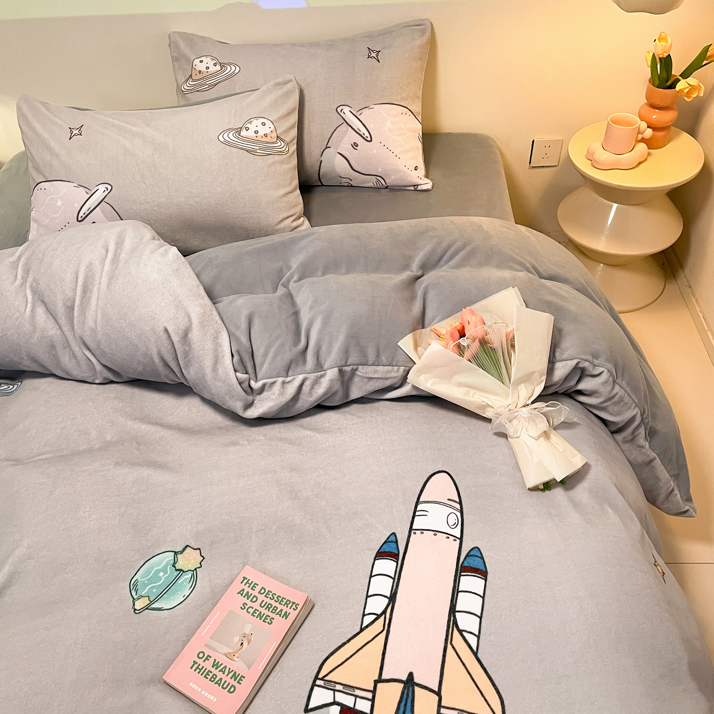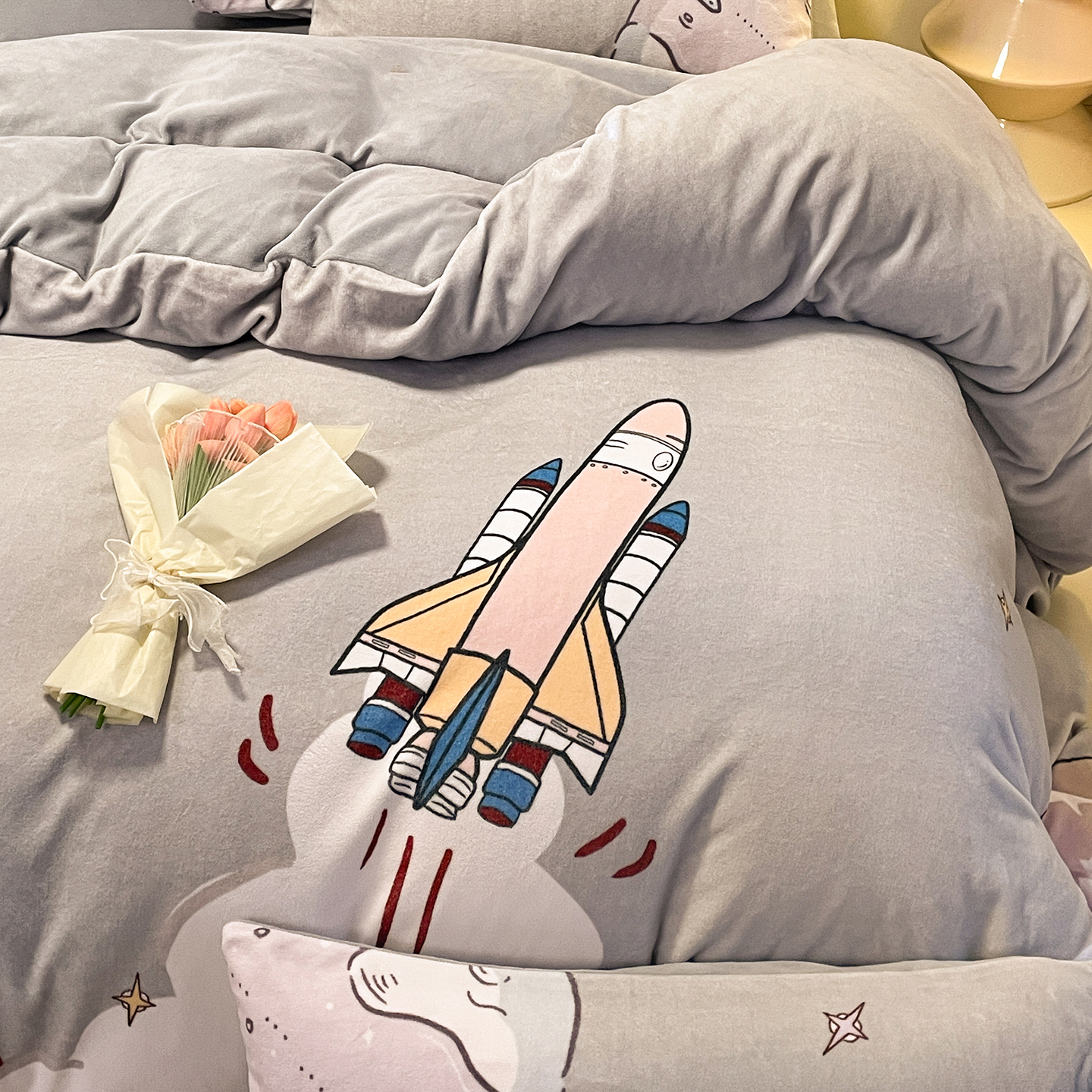 新方向 2025新款全消光A类儿童牛奶绒四件套-飞行游 飞行游-灰