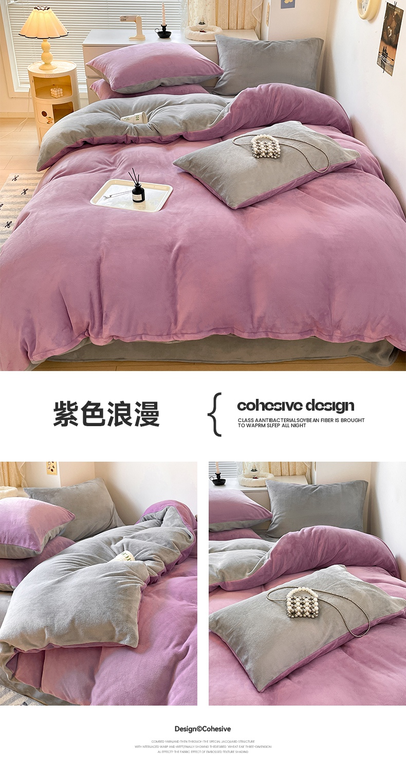 寐眠 新款牛奶绒纯色双拼四件套-风格二 紫色浪漫