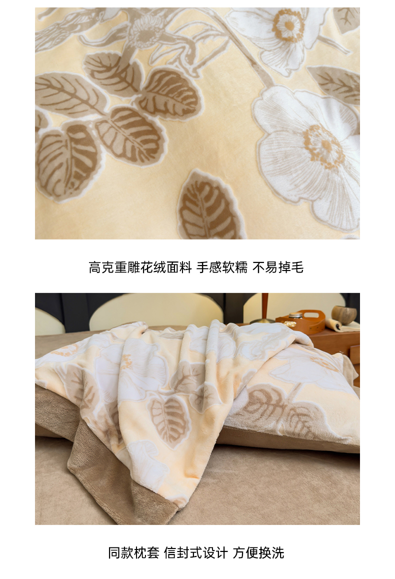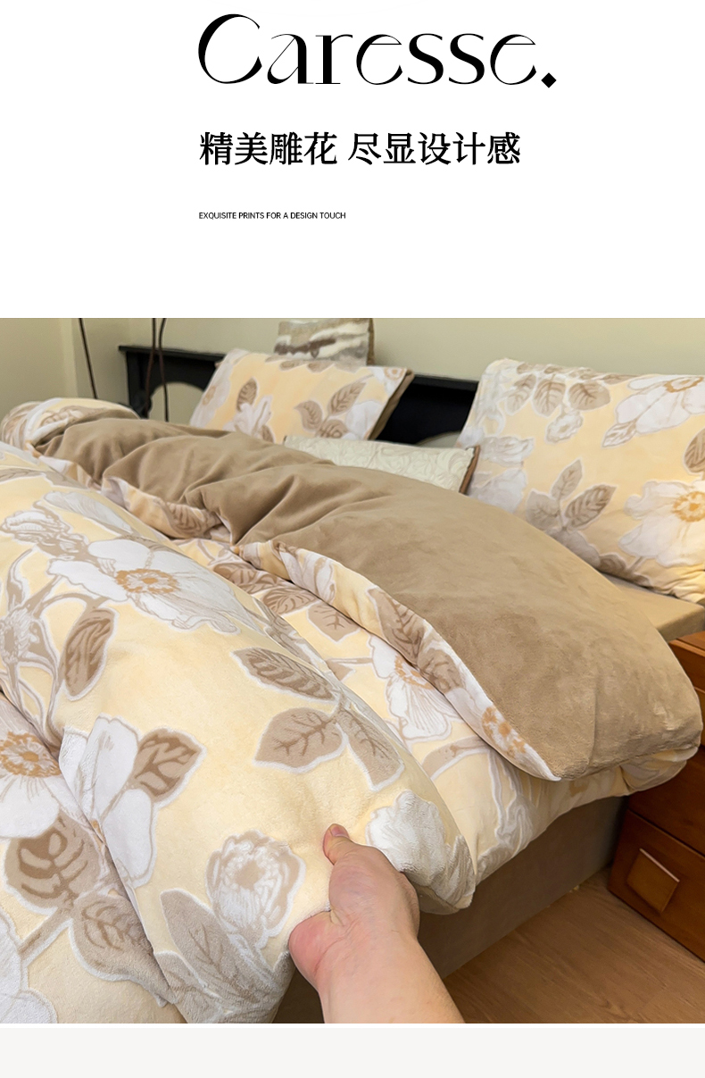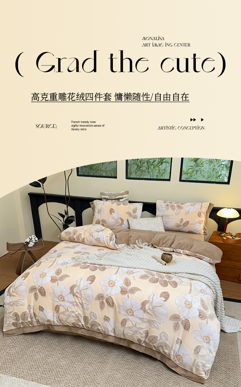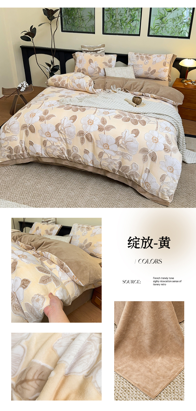 商品名称:氧家 2024新款雕花绒四件套 绽放-黄