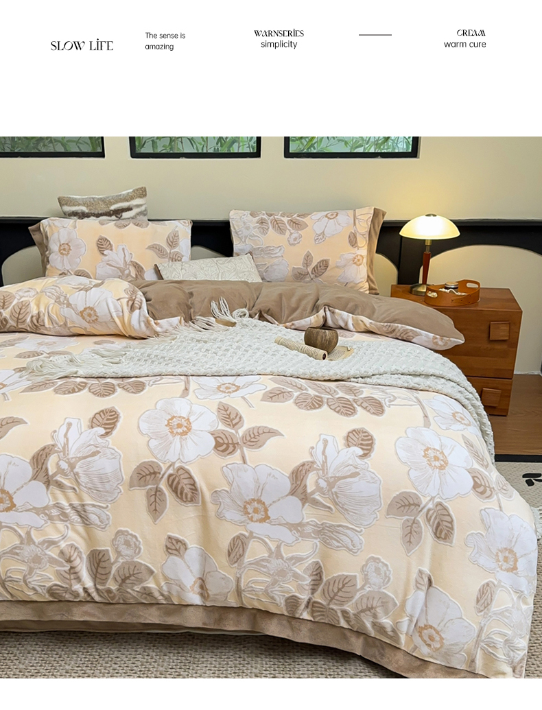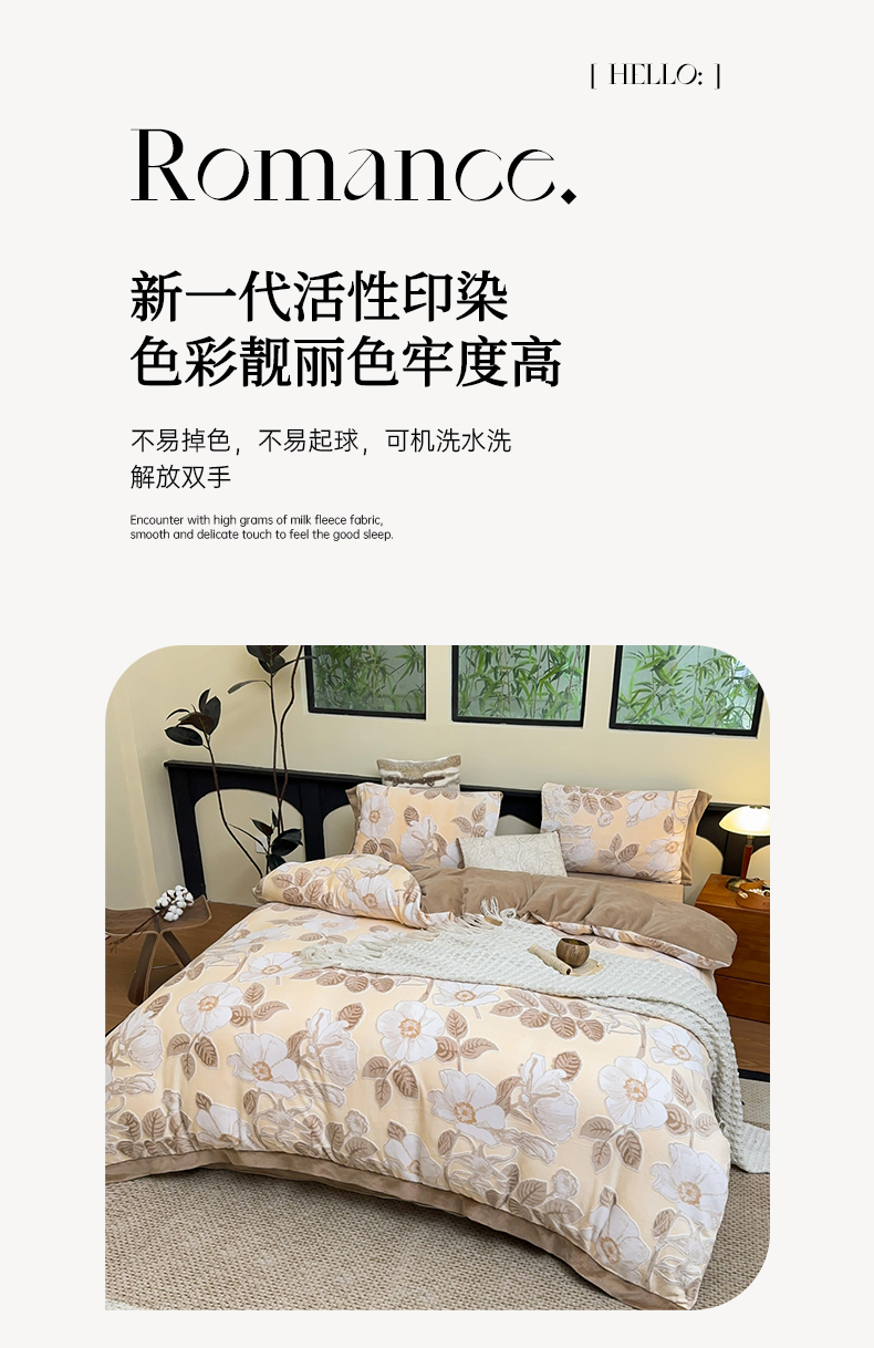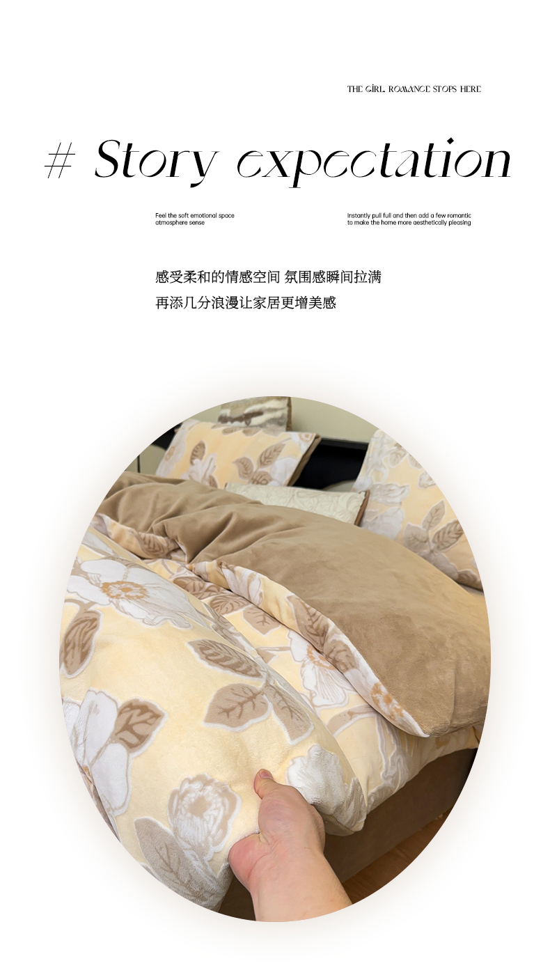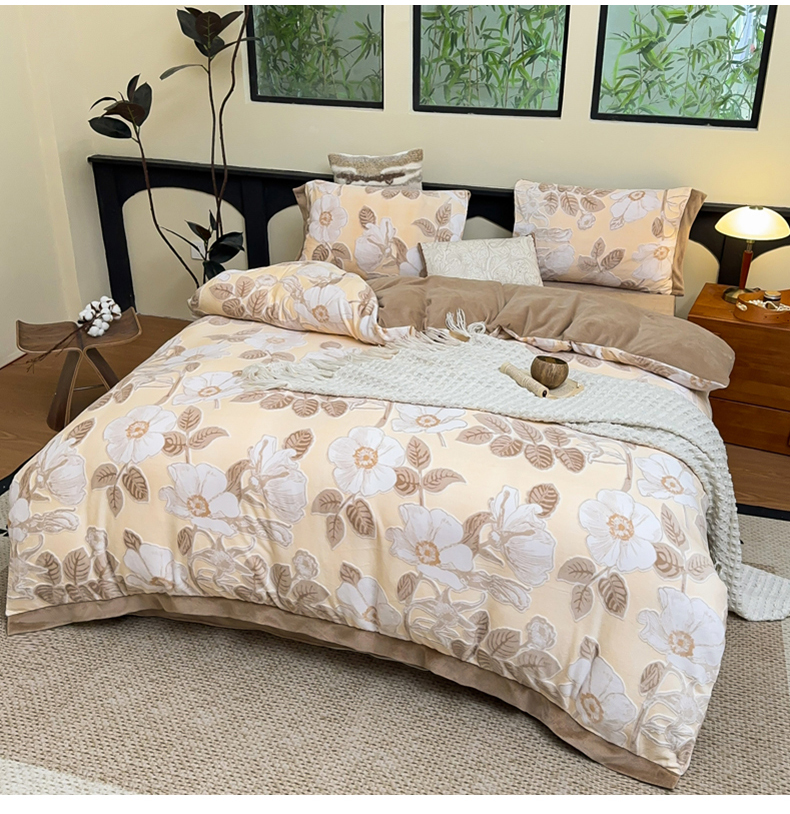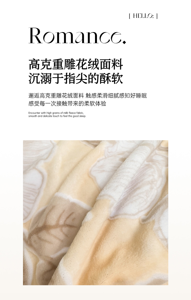 商品名称:氧家 2024新款雕花绒四件套 绽放-黄
