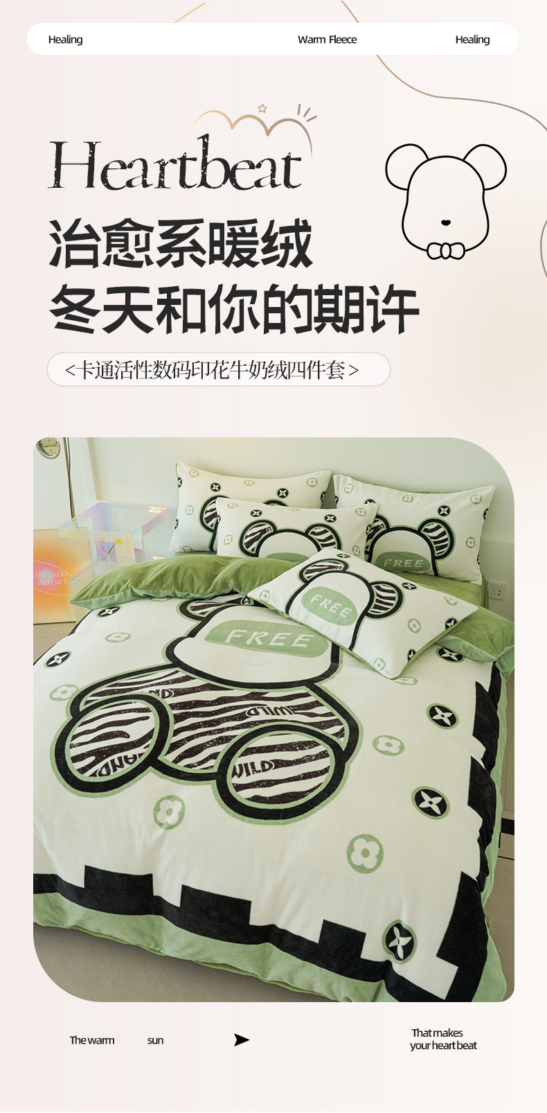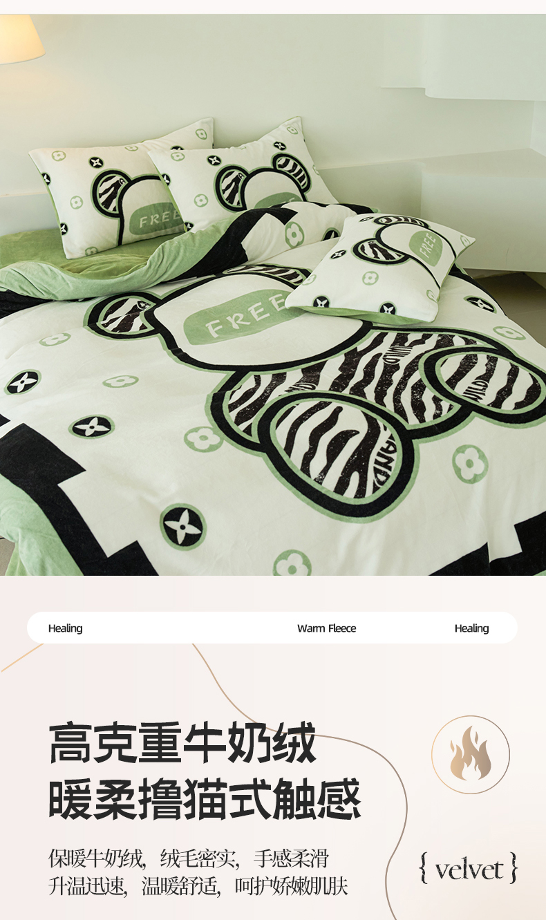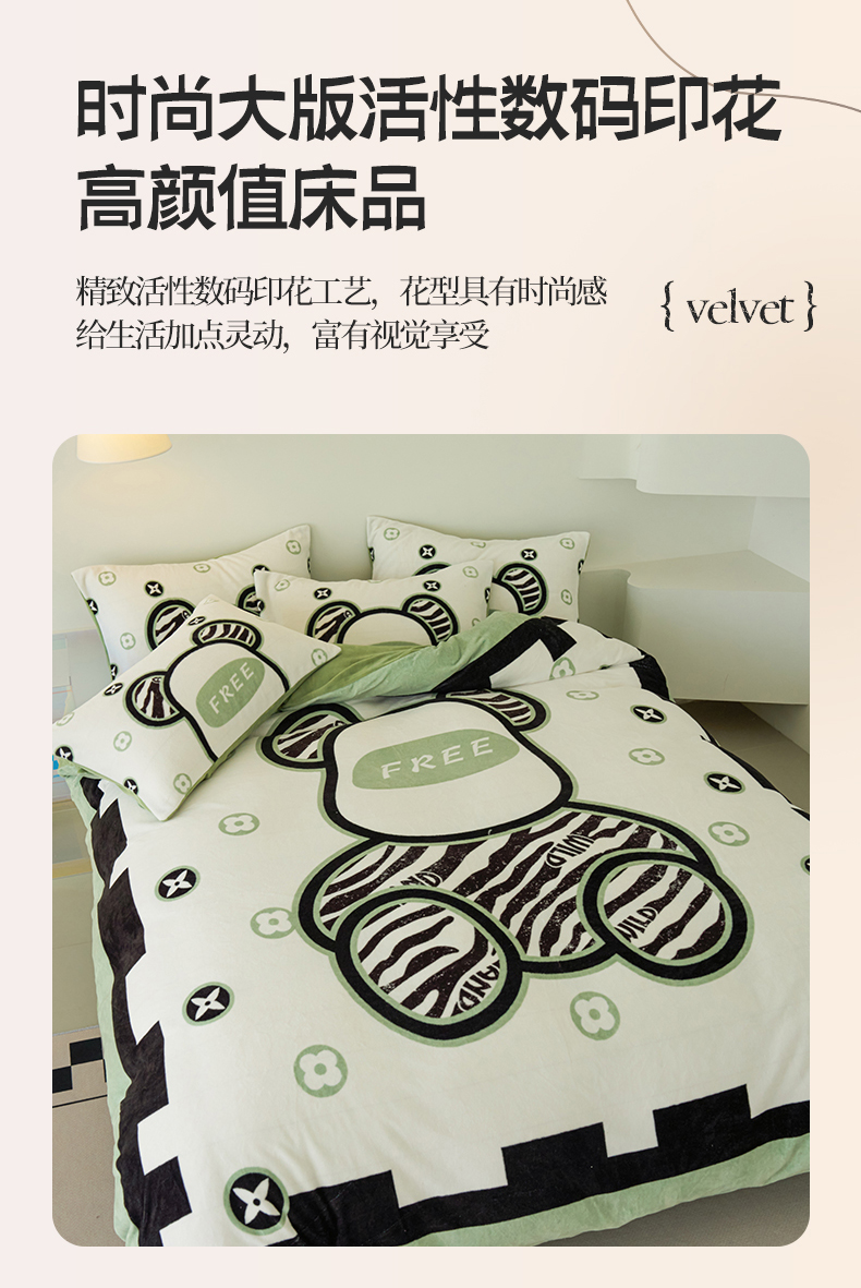 (总)色鬼布艺高端家居主号 2025新款潮牌数码印花牛奶绒四件套,爱心满满,白香,黑白V,黑色爱心,花千树,景年,咖老花,绿色花朵,晴末,条纹女孩,小白熊,小黑熊,英伦,英伦熊,枝繁叶茂