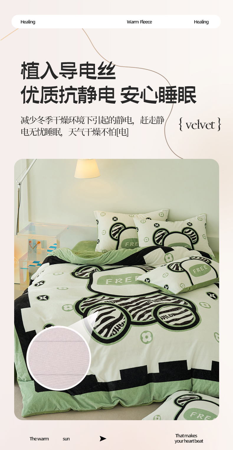 商品名称:色鬼布艺 2024新款秋冬加厚牛奶绒四件套 艾维斯