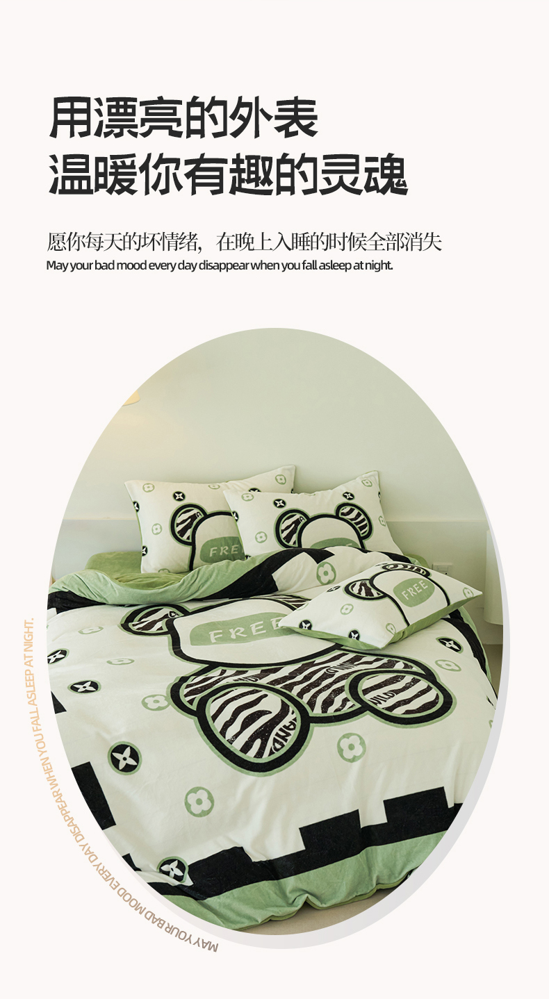 (总)色鬼布艺高端家居主号 2025秋冬新款网红款水洗棉四季款四件套,豹纹熊-粉,豹纹熊-绿,彩虹兔,格子熊,公仔蓝,梦幻粉,梦幻蓝,棋盘格公仔,太阳花粉,天使熊-粉,天使熊-咖,小熊头,熊头白,熊头橙,熊头咖,熊仔白