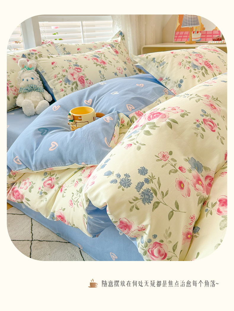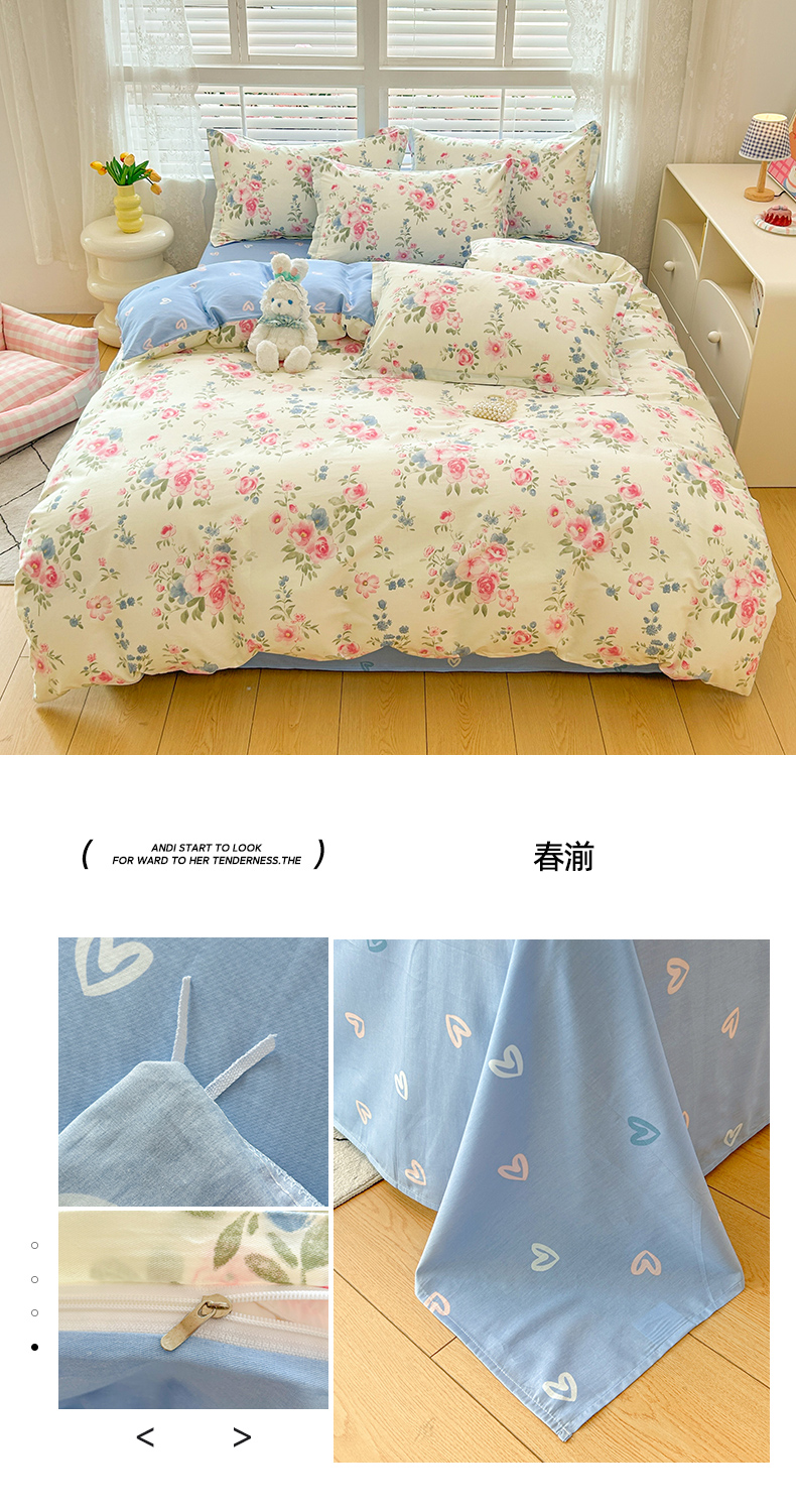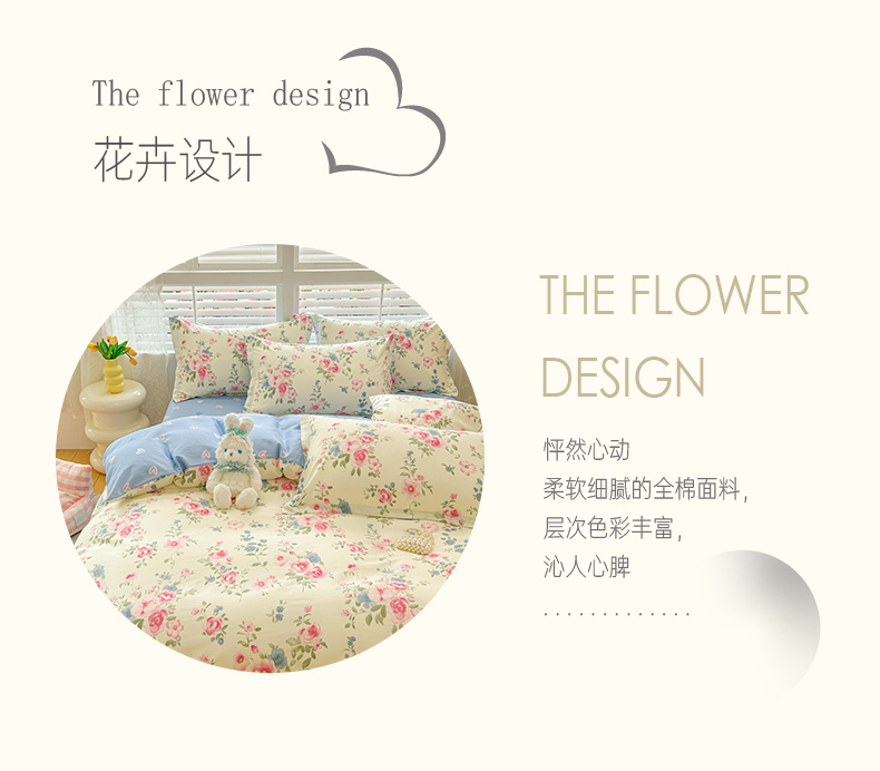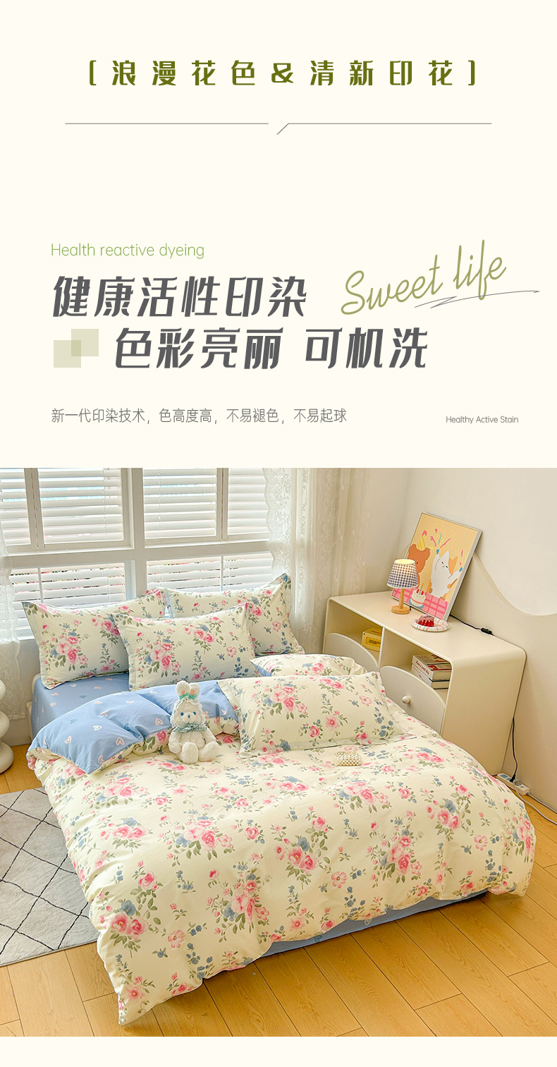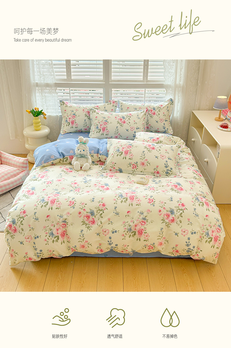 (总)红馆 2023新款12868全棉印花四件套,春浅,花期,简花,里约,漫步花丛,梦想花园,紫韵,字母兔