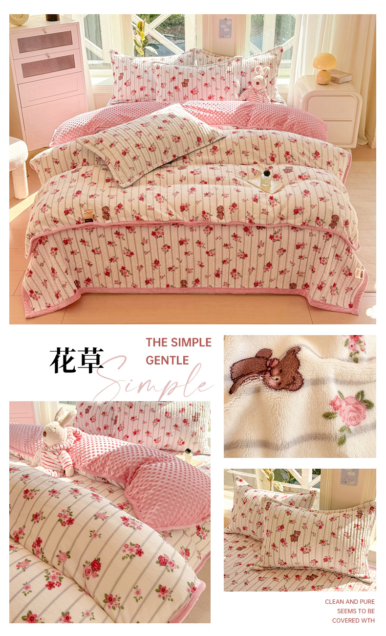 梦可莱家居 2024新款牛奶豆豆绒印花床盖四件套 花草