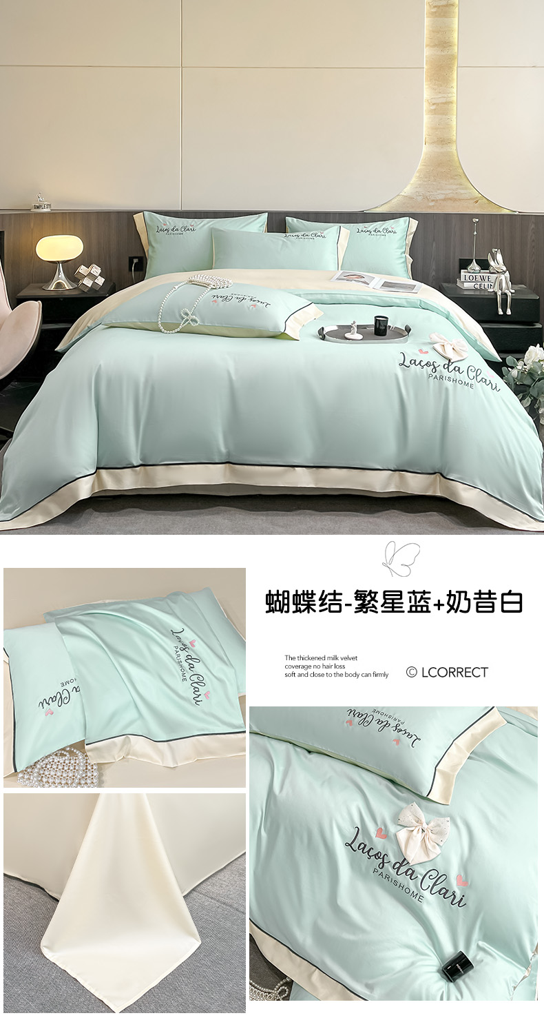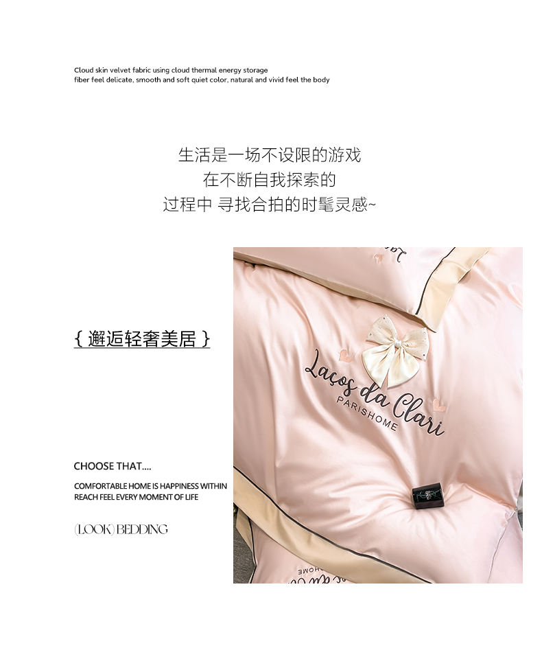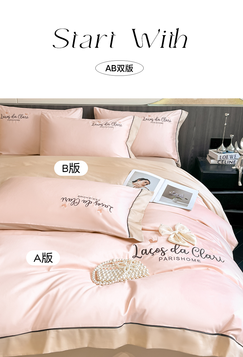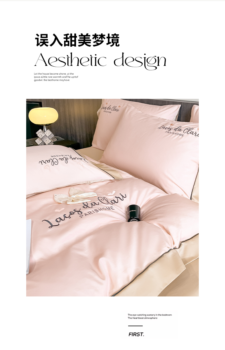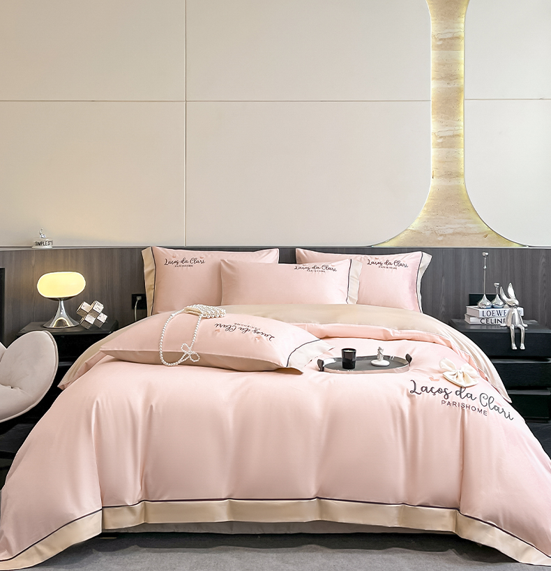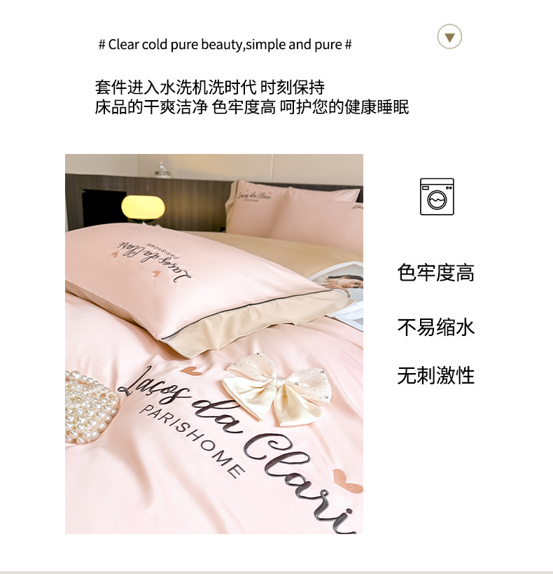当前位置: 91家纺网 > 商品网购 > 床品套件 > 四件套 > 全棉普通四件套 > 娜娜 2024新款全棉时尚刺绣AB版双拼宽边绣花四件套--蝴蝶结系列 蝴蝶结-粉+奶咖