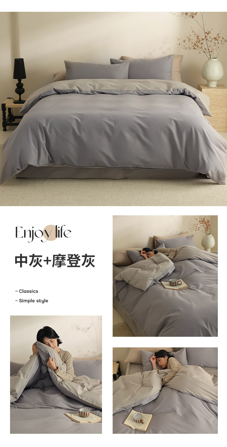 商品名称:轩和家居 2024新款50S长绒棉磨毛单被套 中灰+摩登灰