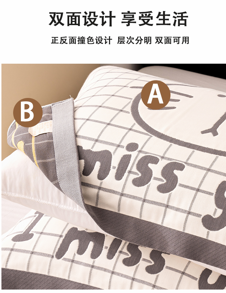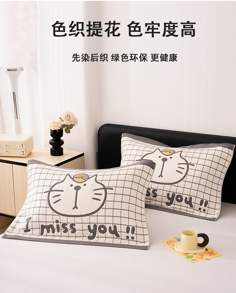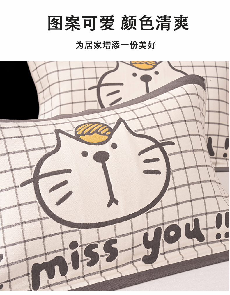 商品名称:棠薇家纺 2025新款加厚枕巾全棉纱布枕巾纯棉一对装枕头巾八层纱布枕巾 52*78±2cm 好奇猫