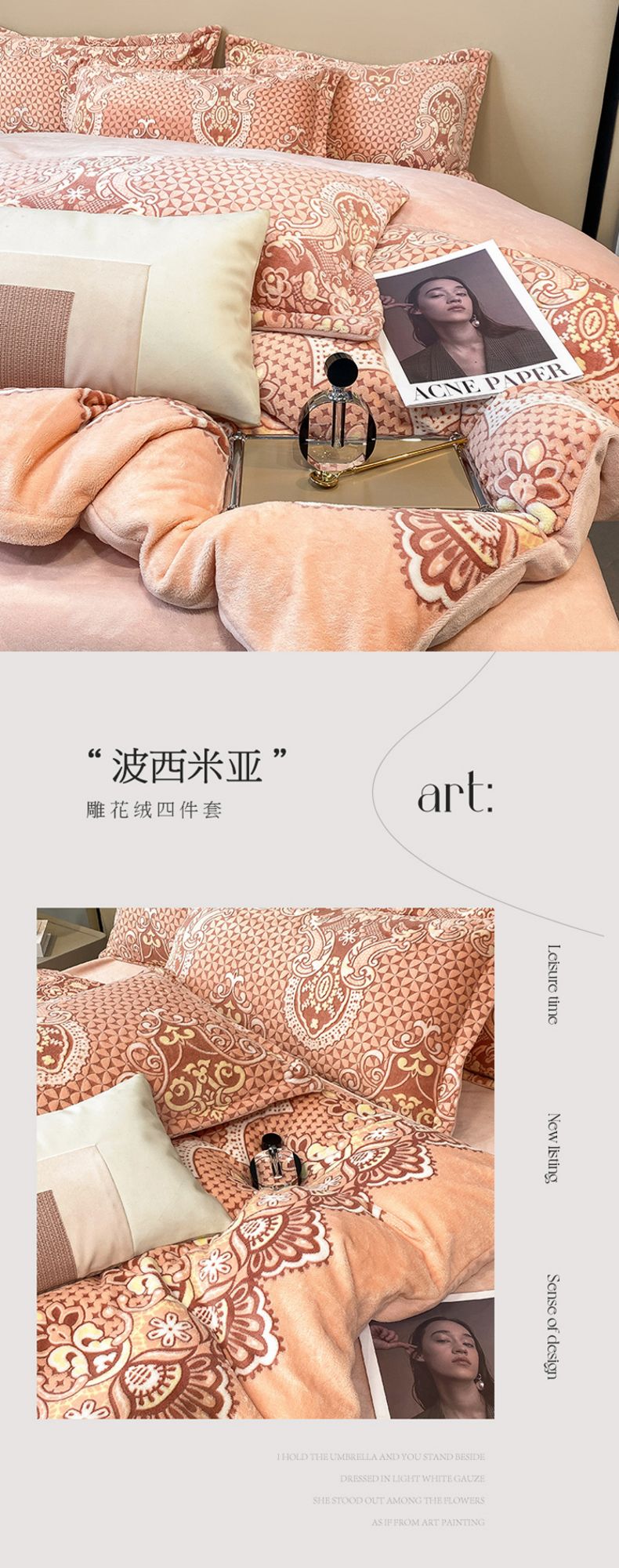 商品名称:金喜 2024新款加厚保暖230克高克重牛奶绒四件套雕花绒四件套-牛奶绒雕花系列 波西米亚