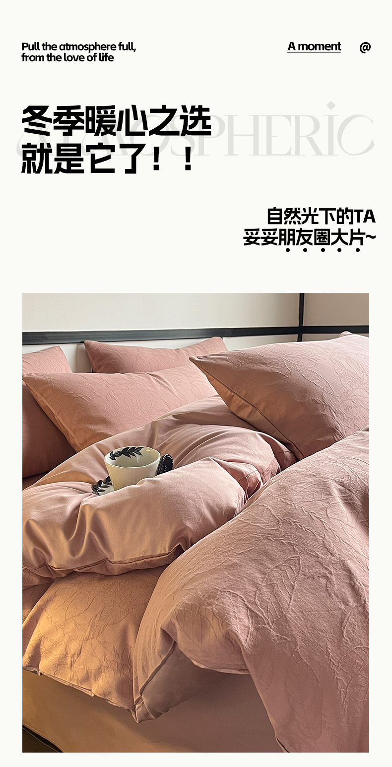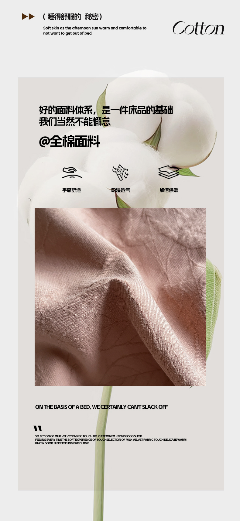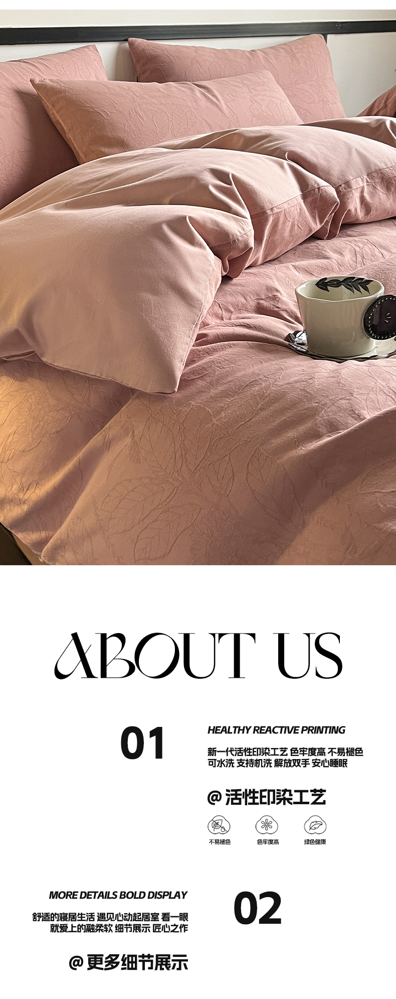 商品名称:雅居纺家纺 2024新款100%全棉三层纱提花四件套 浪漫树叶