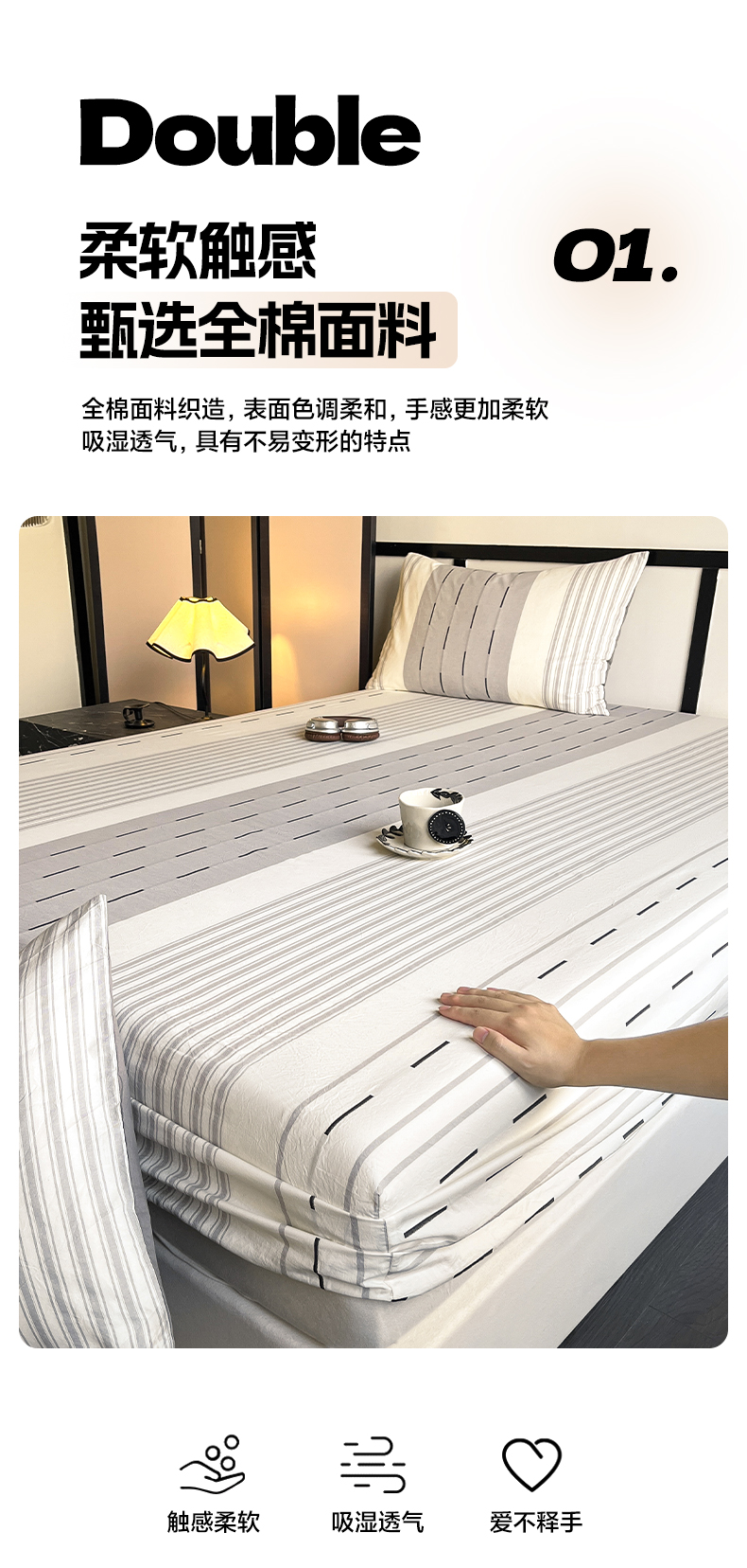 商品名称:雅居纺家纺 2024新款100%全棉提花单床笠-如初 如初-灰