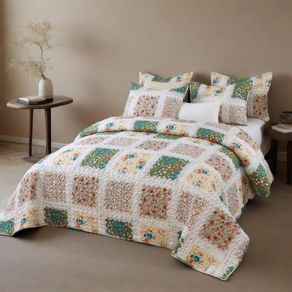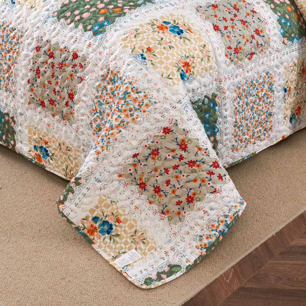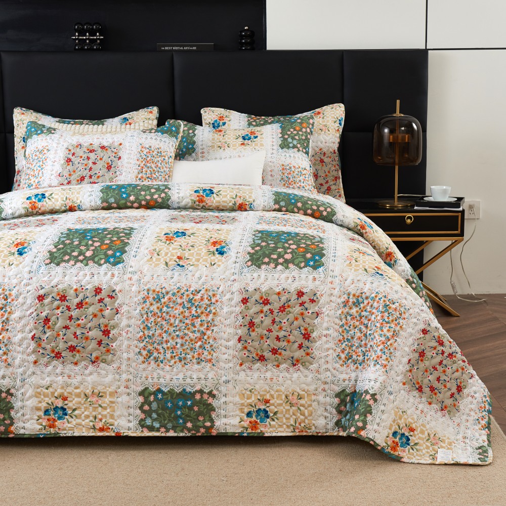 跨境专供 2025年绗缝被四季通用床可水洗床盖夹棉绗缝床盖,安娜花园